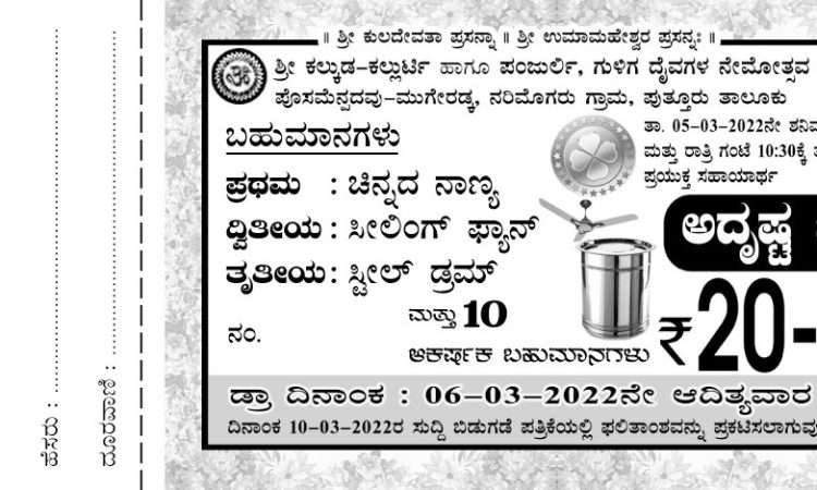 ತೃತೀಯ : ಲಕ್ಕಿ ನಂ-1231