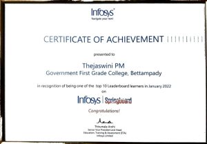 ಮೇ 2ರಂದು ಬೆಂಗಳೂರಿನ ಇನ್ಫೋಸಿಸ್ ಕ್ಯಾಂಪಸ್ ನಲ್ಲಿ ನಡೆದ ಸೆಲೆಬ್ರೇಟಿಂಗ್ ಟಾಪ್ ಲರ್ನರ್ಸ್ ಆನ್ ಇನ್ಫೋಸಿಸ್ ಸ್ಪ್ರಿಂಗ್ಬೋರ್ಡ್ ಕಾರ್ಯಕ್ರಮದಲ್ಲಿ ಈ ವಿದ್ಯಾರ್ಥಿನಿಯರಿಗೆ ಪ್ರಶಸ್ತಿ ಪತ್ರಗಳನ್ನು ನೀಡಿ ಗೌರವಿಸಲಾಯಿತು. ಇನ್ಫೋಸಿಸ್ ನ ಈ ಮಹತ್ವಾಕಾಂಕ್ಷೆಯ ಯೋಜನೆಯನ್ನು ತನ್ನ ವಿದ್ಯಾರ್ಥಿಗಳಿಗೆ ಪರಿಚಯಿಸಿ, ತರಬೇತಿ ನೀಡಿ ಬೆಟ್ಟಂಪಾಡಿ ಕಾಲೇಜಿನ ವಿದ್ಯಾರ್ಥಿಗಳು ರಾಷ್ಟ್ರಮಟ್ಟದಲ್ಲಿ ಗುರುತಿಸಲು ಮಾರ್ಗದರ್ಶನ ಮಾಡಿದ ಮಾತ್ರವಲ್ಲದೆ ಇದರ ನೋಂದಾವಣಿ ಮಾಡುವುದು ಹೇಗೆ ಎಂಬ ವಿಡಿಯೋವನ್ನು ತನ್ನ ಯುಟ್ಯೂಬ್ ಚಾನಲ್ ಮೂಲಕ ನೀಡಿ ರಾಜ್ಯಾದ್ಯಂತ ಇರುವ ವಿದ್ಯಾರ್ಥಿಗಳ ಜ್ಞಾನಾರ್ಜನೆಗೆ ನೀಡಿರುವ ಕೊಡುಗೆಯನ್ನು ಗುರುತಿಸಿ ಕಾಲೇಜಿನ ಉದ್ಯೋಗ ಕೋಶದ ಸಂಚಾಲಕರು ಹಾಗೂ ವಾಣಿಜ್ಯ ಶಾಸ್ತ್ರ ಸಹಾಯಕ ಪ್ರಾಧ್ಯಾಪಕರು ಆದ ಶ್ರೀ ದೀಕ್ಷಿತ್ ಕುಮಾರ್ ಅವರನ್ನು ಕೂಡ ಗೌರವಿಸಲಾಯಿತು.