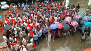 ಕುಂದಾಪುರ: ಕುಂದಾಪುರದಿಂದ ಕೆರಾಡಿ, ಮಾರಣಕಟ್ಟೆ, ಬೆಳ್ಳಾಲ, ಕೊಲ್ಲೂರು ಮಾರ್ಗಕ್ಕೆ ಸರಕಾರಿ ಬಸ್ ಅನ್ನು ಓಡಿಸುವಂತೆ ಆಗ್ರಹಿಸಿ ಎಬಿವಿಪಿ ಕುಂದಾಪುರ ವತಿಯಿಂದ ಶನಿವಾರ ನಗರದ ಶಾಸ್ತ್ರಿ ವೃತ್ತದಿಂದ ತಾಲೂಕು ಕಚೇರಿಯವರೆಗೆ ಮಳೆಯಲ್ಲಿಯೆ ನೆನೆದುಕೊಂಡು ಪ್ರತಿಭಟನಾ ಮೆರವಣಿಗೆ ನಡೆಯಿತು.