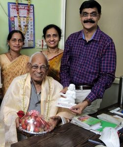 ಉಜಿರೆ: ಉಜಿರೆಯ ಬೆನಕ ಆಸ್ಪತ್ರೆಯ ನಿರ್ದೇಶಕ ಡಾ.ಗೋಪಾಲಕೃಷ್ಣ ಹಾಗೂ ಡಾ.ಭಾರತಿ ಅವರು ವೈದ್ಯರ ದಿನದ ಅಂಗವಾಗಿ ಕೊಕ್ಕಡದ ಪಂಚಮಿ ಹಿತಾರ್ಯುಧಾಮದ ನಿರ್ದೇಶಕರಾದ ಡಾ.ಮೋಹನದಾಸ ಗೌಡ ಅವರನ್ನು ಫಲ ಪುಷ್ಪಗಳನ್ನಿತ್ತು ಅಭಿವಂದಿಸಿದರು.ಡಾ.ಮೋಹನದಾಸ ಗೌಡ ಅವರು ಕಳೆದ ಆರು ದಶಕಗಳಿಂದ ಸಮುದಾಯ ಮಟ್ಟದಲ್ಲಿ ಅರೋಗ್ಯ ಕ್ಷೇತ್ರದಲ್ಲಿ ನೀಡುತ್ತಿರುವ ಅನುಪಮ ಸೇವೆಗಾಗಿ ರಾಷ್ಟ್ರೀಯ ವೈದ್ಯರ ದಿನದಂದು ಗೌರವಿಸಿದ್ದೇವೆ ಎಂದು ಡಾ.ಗೋಪಾಲಕೃಷ್ಣ ತಿಳಿಸಿದರು. ಡಾ.ಮೋಹನದಾಸ ಗೌಡ ಅವರ ಸೇವಾಮನೋಭಾವದ ಮೂಲಕ ಮಾನವೀಯತೆ ಮೆರೆದಿರುವ ವೃತ್ತಿ ಪರತೆ ಅನುಕರಣೀಯ ಎಂದು ಶ್ಲಾಘಿಸಿದರು.