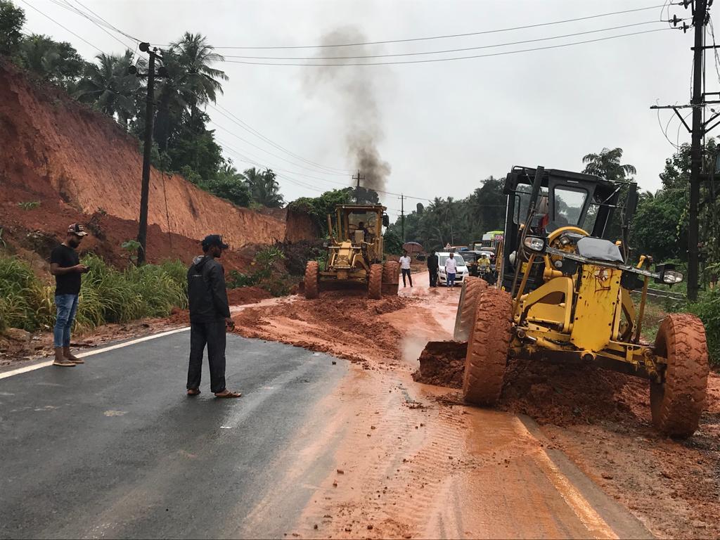 ಹೆದ್ದಾರಿ ಕಾಮಗಾರಿ ನಡೆಯುವುದರಿಂದ ಕೆಲವು ಗುಡ್ಡಗಳನ್ನು ಅಗೆದು ಅಧರ್ಂಬರ್ಧ ಕಾಮಗಾರಿ ನಡೆಸಲಾಗಿತ್ತು. ನಿರಂತರವಾಗಿ ಸುರಿಯುತ್ತಿರುವ ಮಳೆಯಿಂದ ಸೂರಿಕುಮೇರು ಎಂಬಲ್ಲಿ ಗುಡ್ಡ ಕುಸಿದು ರಸ್ತೆಗೆ ಬಿದ್ದಿದೆ. ಇದರಿಂದ ಹೆದ್ದಾರಿಯಲ್ಲಿ ವಾಹನ ಸಂಚಾರ ಸ್ಥಗಿತಗೊಂಡಿದೆ. ಬಳಿಕ ಸ್ಥಳೀಯರು ಮಣ್ಣನ್ನು ತೆರವುಗೊಳಿಸಲು ಯತ್ನಿಸುತ್ತಿದ್ದು, ಇದೀಗ ಒಂದು ಬದಿಯಲ್ಲಿ ಮಾತ್ರ ವಾಹನ ಸಂಚಾರ ಪ್ರಾರಂಭಗೊಂಡಿದ್ದು, ಅಲ್ಪ ಹೊತ್ತಿನಲ್ಲಿ ತೆರವು ಕಾರ್ಯಾಚರಣೆ ಸಂಪೂರ್ಣ ಗೊಳ್ಳುವ ನಿರೀಕ್ಷೆ ಇದೆ.