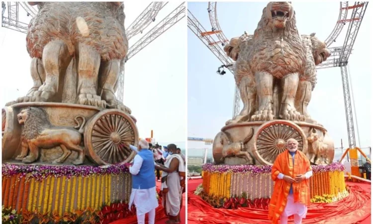 ಈ ಅಶೋಕ ಸ್ತಂಭವು 20 ಅಡಿಗಳಿಗಿಂತ ಹೆಚ್ಚು ಎತ್ತರವಿದೆ. ಕ್ರೇನ್ ಸಹಾಯದಿಂದ ಈ ಸ್ತಂಭವನ್ನು ಹೊಸ ಸಂಸತ್ ಕಟ್ಟಡದ ಮೇಲೆ ಸ್ಥಾಪಿಸಲಾಗಿದೆ.