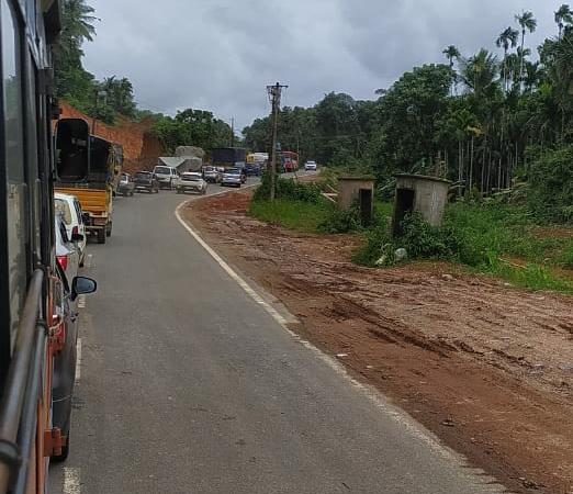 ವಿಟ್ಲ: ಮಾಣಿ ಸಮೀಪದ ಸೂರಿಕುಮೇರು ಜಂಕ್ಷನ್ ಬಳಿ ರಾಷ್ಟ್ರೀಯ ಹೆದ್ದಾರಿ ಚತುಷ್ಪಥ ಕಾಮಗಾರಿ ನಡೆಯುವಲ್ಲಿ ರಸ್ತೆಯ ಮಧ್ಯೆ ಅಡುಗೆ ಎಣ್ಣೆ ಸಾಗಾಟದ ಟ್ಯಾಂಕರ್ ಒಂದು ಕೆಟ್ಟು ನಿಂತ ಪರಿಣಾಮ ರಸ್ತೆ ಸಂಚಾರದಲ್ಲಿ ವ್ಯತ್ಯಯ ಉಂಟಾಗಿದೆ. ಇದರಿಂದಾಗಿ ಕಿಲೋಮೀಟರ್ ಗಟ್ಟಲೆ ವಾಹನಗಳು ಸಾಲಾಗಿ ನಿಂತಿದೆ. ಸ್ಥಳಕ್ಕೆ ವಿಟ್ಲ ಠಾಣಾ ಪೆÇಲೀಸರು ತೆರಳಿ ಸ್ಥಳೀಯ ಯುವಕರ ಸಹಕಾರದಲ್ಲಿ ಸುಗಮ ಸಂಚಾರಕ್ಕೆ ವ್ಯವಸ್ಥೆ ಮಾಡಿಕೊಟ್ಟರು.