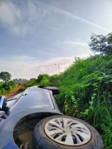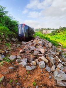 ಮುಂಜಾವಿನ ವೇಳೆ ಸುಮಾರು 2.50 ರ ವೇಳೆ ನಿದ್ದೆಯ ಮಂಪರಿನಲ್ಲಿ ಕಾರು ನಿಯಂತ್ರಣ ತಪ್ಪಿ ಕೆಳಗೆ ಬಿದಿದ್ದು, ಇಂದು ಬೆಳಿಗ್ಗೆ ಕಾರನ್ನು ವಿಜಯಲಕ್ಷ್ಮಿ ಅವರ ಕ್ರೇನ್ ಬಳಸಿ ಕಾರನ್ನು ಮೇಲಕ್ಕೆತ್ತಲಾಗಿದೆ.