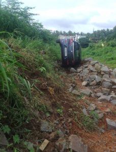 ಬಂಟ್ವಾಳ: ನಿದ್ದೆಯ ಮಂಪರಿನಲ್ಲಿ ಚಾಲಕನ ನಿಯಂತ್ರಣ ತಪ್ಪಿ ಕಾರೊಂದು ರಸ್ತೆಯ ಬದಿಯ ಹೊಂಡಕ್ಕೆ ಉರುಳಿ ಬಿದ್ದ ಘಟನೆ ಪಾಣೆಮಂಗಳೂರು ಎಂಬಲ್ಲಿ ನಡೆದಿದ್ದು, ಚಾಲಕ ಯಾವುದೇ ಗಾಯವಿಲ್ಲದೆ ಪವಾಡಸದೃಶವಾಗಿ ಪಾರಾಗಿದ್ದಾನೆ.