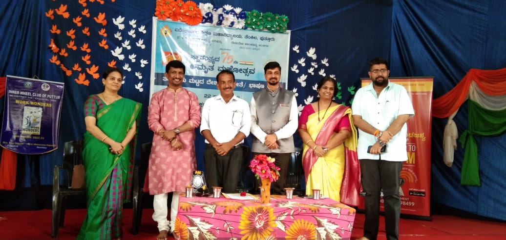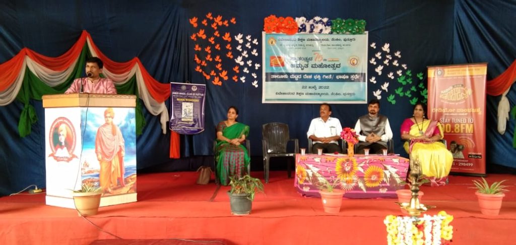 ಪುತ್ತೂರು: ವಿವೇಕಾನಂದ ಶಿಕ್ಷಣ ಮಹಾವಿದ್ಯಾಲಯ ತೆಂಕಿಲ, ದಕ್ಷಿಣ ಕನ್ನಡ ಜಿಲ್ಲಾ ಕನ್ನಡ ಸಾಹಿತ್ಯ ಪರಿಷತ್ ಪುತ್ತೂರು ಘಟಕ ಹಾಗೂ ರೇಡಿಯೋ ಪಾಂಚಜನ್ಯ 90.8 ಎಫ್.ಎಂ. ನೇತೃತ್ವದಲ್ಲಿ ಸ್ವಾತಂತ್ರ್ಯ ಅಮೃತ ಮಹೋತ್ಸವದ ಪ್ರಯುಕ್ತ ನಡೆದ ತಾಲೂಕು ಮಟ್ಟದ ದೇಶಭಕ್ತಿಗೀತೆ ಸ್ಪರ್ಧೆ ನಡೆಯಿತು.