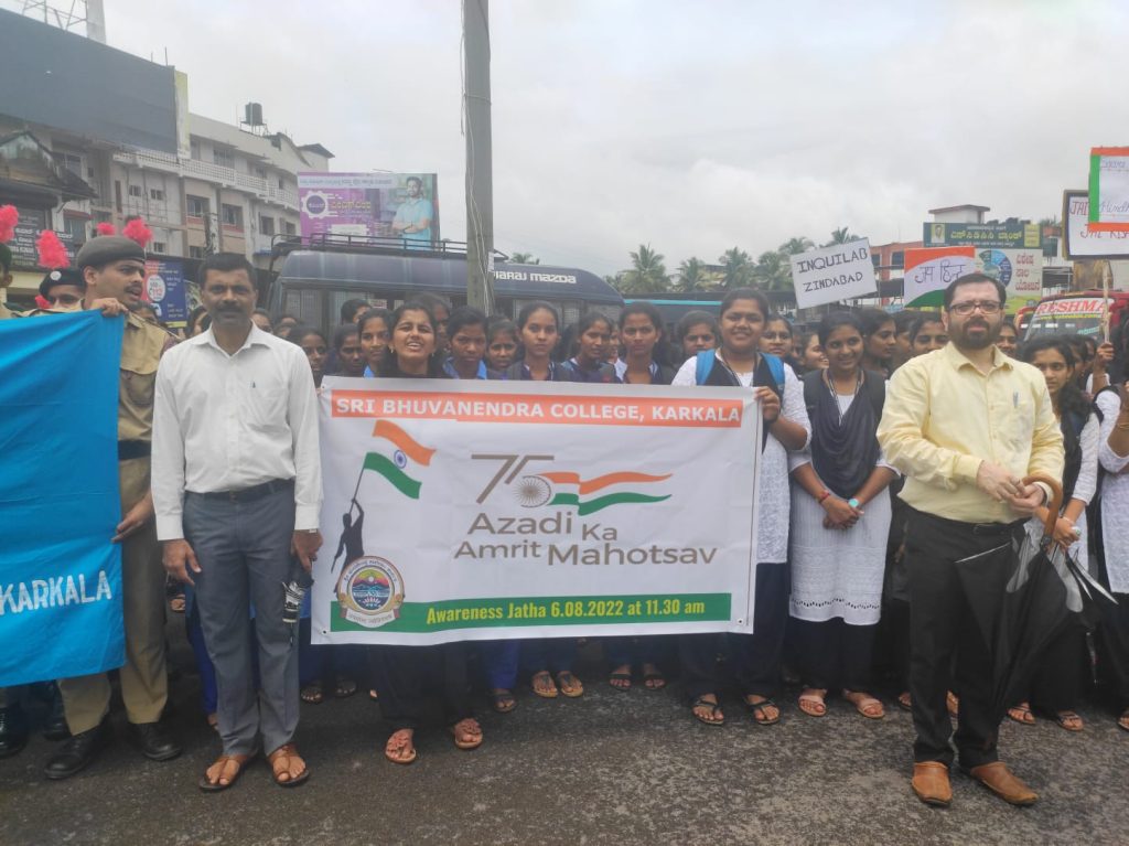 ಆಜಾದ್ ಕಿ ಅಮೃತ ಮಹೋತ್ಸವ ಮತ್ತು ಹರ್ ಘರ್ ತಿರಂಗಾ ಅಭಿಯಾನದ ಅಂಗವಾಗಿ ಶ್ರೀ ಭುವನೇಂದ್ರ ಕಾಲೇಜು ಕಾರ್ಕಳದ ವತಿಯಿಂದ ಕಾಲೇಜಿನಿಂದ ಕಾರ್ಕಳ ಬಸ್ ನಿಲ್ದಾಣದ ವರೆಗೆ ಬೃಹತ್ ಜಾಥಾವನ್ನು ಆಯೋಜಿಸಲಾಗಿತ್ತು.