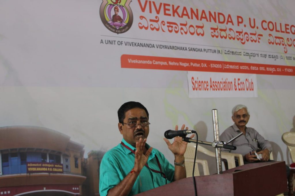 ವಿವೇಕಾನಂದ ಪದವಿಪೂರ್ವ ಕಾಲೇಜಿನಲ್ಲಿ ವಿಜ್ಞಾನ ಮತ್ತು ಇಕೋ ಕ್ಲಬ್ ವತಿಯಿಂದ ಆಯೋಜಿಸಲಾದ ಪರಿಸರ ಸಂರಕ್ಷಣೆಯಲ್ಲಿ ನಮ್ಮ ಹೊಣೆ ಎಂಬ ಕಾರ್ಯಕ್ರಮದಲ್ಲಿ ಮುಖ್ಯ ಅತಿಥಿಯಾಗಿ ಭಾಗವಹಿಸಿ ಅವರು ಮಾತನಾಡಿದರು.