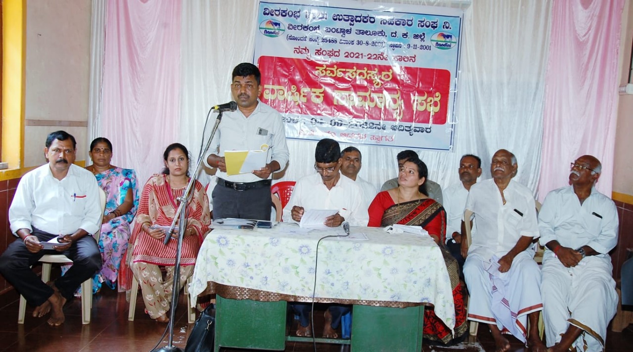 ಕಲ್ಲಡ್ಕ : ವೀರಕಂಬ ಹಾಲು ಉತ್ಪಾದಕರ ಸಹಕಾರ ಸಂಘ ನಿಯಮಿತ ಇದರ 2021 -22 ನೇ ಸಾಲಿನ ಸರ್ವ ಸದಸ್ಯರ ವಾರ್ಷಿಕ ಸಾಮಾನ್ಯ ಸಭೆಯು ಸರಕಾರಿ ಪ್ರಾಥಮಿಕ ಶಾಲೆ ಮಜಿ, ವೀರಕಂಬ ಇಲ್ಲಿ ಸಂಘದ ಅಧ್ಯಕ್ಷರಾದ ಶ್ರೀಯುತ ವೀರಪ್ಪ ಮೂಲ್ಯ ಬೆತ್ತಸರವು ಇವರ ಅಧ್ಯಕ್ಷತೆಯಲ್ಲಿ ಜರಗಿತ್ತು.