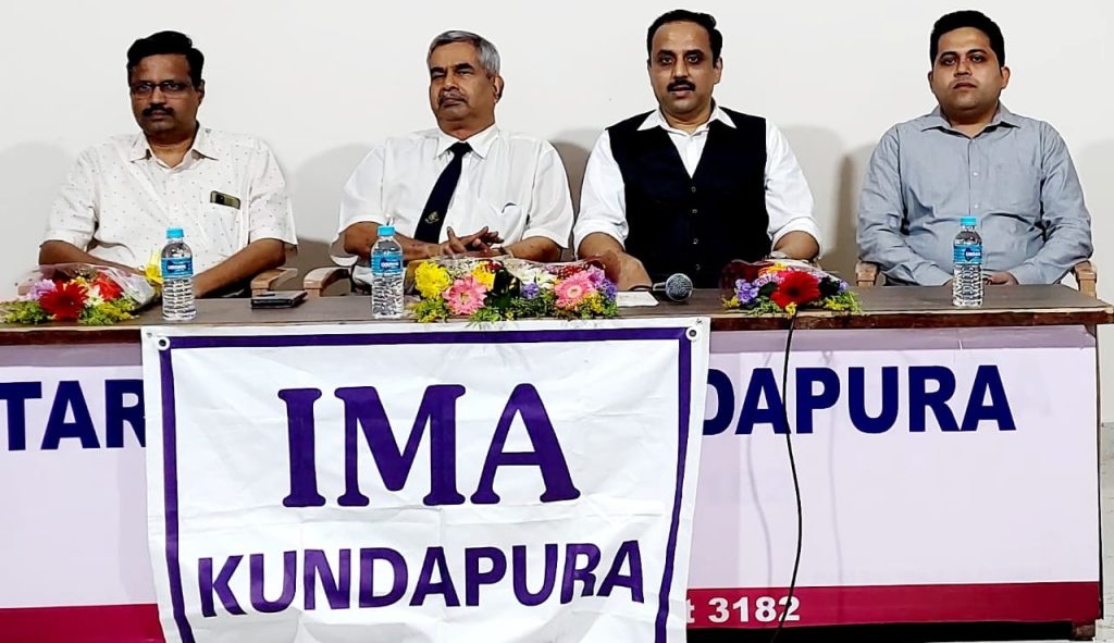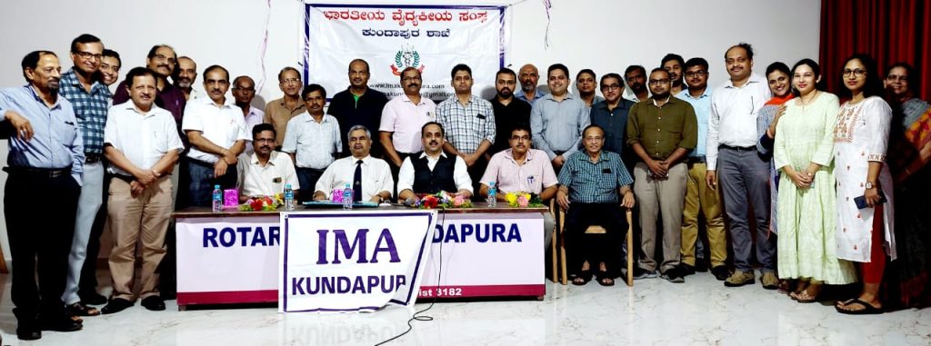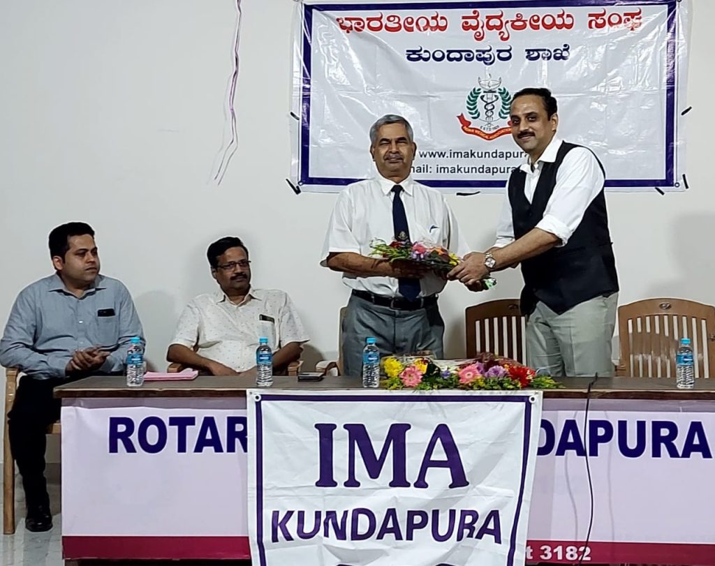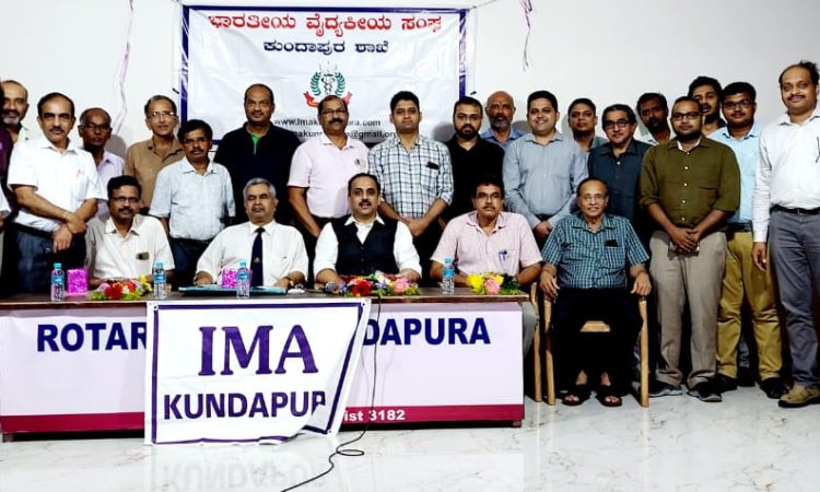 ಭಾರತೀಯ ವೈದ್ಯಕೀಯ ಸಂಘ(I.M.A)ಯ ರಾಜ್ಯಾಧ್ಯಕ್ಷರಾದ ಸುರೇಶ್ ಕುಡ್ವರು ಕುಂದಾಪುರ ಶಾಖೆಯ ತಮ್ಮ ಅಧಿಕೃತ ಭೇಟಿಗಾಗಿ ಆಗಮಿಸಿದ್ದರು. ಅವರೊಂದಿಗೆ ಜೊತೆ ಕಾರ್ಯದರ್ಶಿಗಳಾದ ಙ.ಎಸ್ ರಾವ್ ಅವರೂ ಆಗಮಿಸಿದ್ದರು. ಸಮಾರಂಭವು ಗಿಳಿಯಾರ ಕುಶಾಲ್ ಹೆಗ್ಡೆ ರೋಟರಿ ಭವನದಲ್ಲಿ ನಡೆದಿದ್ದು, ರಾಜ್ಯಾಧ್ಯಕ್ಷರು IMAಯ ವಿವಿಧ ಕಾರ್ಯಕ್ರಮಗಳ ಮಹತ್ವದ ಬಗ್ಗೆ ವಿಶೇಷ ಮಾಹಿತಿ ನೀಡಿದರು. ಎಲುಬು ಕೀಲು ಶಸ್ತ್ರ ಚಿಕಿತ್ಸಕ ತಜ್ಞ Dr. ಸಂದೀಪ ನಾವಡ ಪಡುಕೋಣೆ ಅಧ್ಯಕ್ಷತೆ ವಹಿಸಿದ್ದರು. ಭಾವಿ ಅಧ್ಯಕ್ಷ ಮಹೇಶ್ ಅವರನ್ನು ಗೌರವಿಸಲಾಯಿತು. ಜೊತೆ ಕಾರ್ಯದರ್ಶಿ ಸಂದೀಪ ಶೆಟ್ಟಿ ಈ ವರ್ಷದ ಕಾರ್ಯಕ್ರಮಗಳ ವರದಿ ವಾಚಿಸಿ ವಂದಿಸಿದರು .ಸದಸ್ಯರು ಹೆಚ್ಚಿನ ಸಂಖ್ಯೆಯಲ್ಲಿ ಭಾಗವಹಿಸಿದ್ದರು