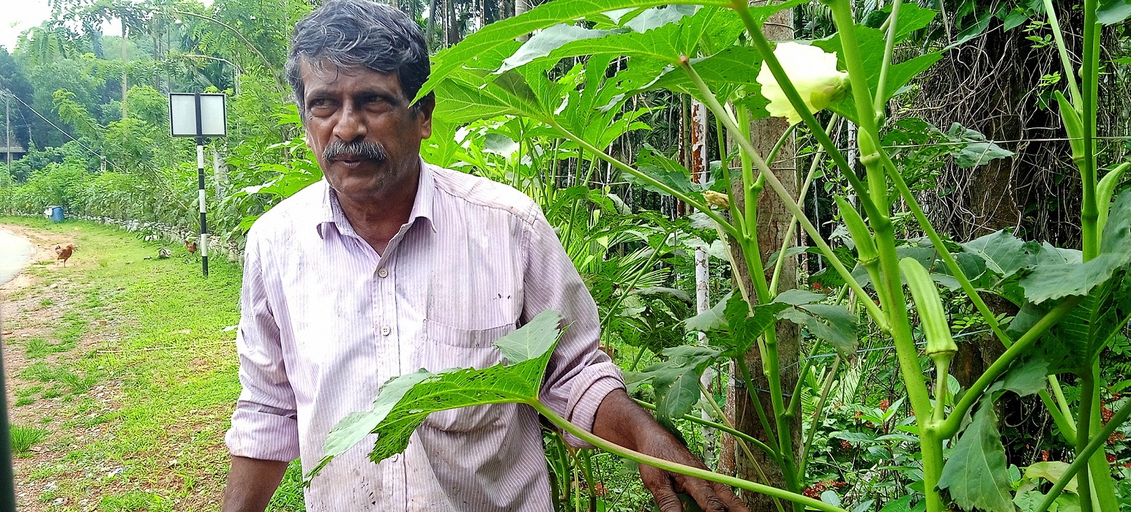 ಇಲ್ಲಿನ ಬಡಗುಂಡಿ ನಿವಾಸಿ ರಾಮಣ್ಣ ಸಪಲ್ಯ ನಾವೂರು ಎಂಬವರು ಕಳೆದ 25ವರ್ಷಗಳಿಂದ ತನ್ನ ಅಡಿಕೆ ತೋಟ ಮತ್ತು ಗದ್ದೆಯಲ್ಲಿ ತರಕಾರಿ ಬೆಳೆಯುತ್ತಿದ್ದು, ಕಳೆದ ಎರಡು ವರ್ಷಗಳ ಹಿಂದೆ ಇವರ ಜಮೀನಿನ ಒಂದು ಭಾಗ ಹೆದ್ದಾರಿ ವಿಸ್ತರಣೆಗೆ ಹೋಗಿದೆ. ಬಂಟ್ವಾಳ-ಪುಂಜಾಲಕಟ್ಟೆ ರಾಷ್ಟ್ರೀಯ ಹೆದ್ದಾರಿ ವಿಸ್ತರಣೆ ಕಾಮಗಾರಿ ಭರದಿಂದ ನಡೆಯುತ್ತಿದ್ದು, ಈ ರಸ್ತೆ ಬದಿ ಉಳಿದಿರುವ ಅಡಿಕೆ ತೋಟಕ್ಕೆ ಇವರು ರಕ್ಷಣೆ ಬೇಲಿ ಅಳವಡಿಸಿದ್ದಾರೆ. ಕಳೆದ ಎರಡು ವರ್ಷಗಳಿಂದ ಈ ಬೇಲಿಯುದ್ದಕ್ಕೂ ಗೋಣಿ ಚೀಲದಲ್ಲಿ ಸಾವಯವ ಗೊಬ್ಬರ ಬಳಸಿ ಸಾಲು ಸಾಲು ಬೆಂಡೆ ಮತ್ತು ಅಲಸಂಡೆ ಗಿಡ ಬೆಳೆಯುತ್ತಿದ್ದಾರೆ. ಈ ಹೆದ್ದಾರಿಯಲ್ಲಿ ಸಾಗುವ ಪ್ರಯಾಣಿಕರು ಮತ್ತು ವಾಹನ ಸವಾರರು ಈ ಫಲವತ್ತಾದ ತರಕಾರಿ ಕಂಡು ಕುತೂಹಲದಿಂದ ವೀಕ್ಷಿಸುತ್ತಿರುರಸ್ತೆ ಬದಿ ಸಾಲು ಸಾಲು ಬೆಳೆದ ಬೆಂಡೆ ಕೃಷಿ ವೀಕ್ಷಿಸುತ್ತಿರುವ ರಾಮಣ್ಣ ನಾವೂರು.ವ ದೃಶ್ಯ ಕಂಡು ಬಂದಿದೆ. ಕೇವಲ ಹಟ್ಟಿಗೊಬ್ಬರ ಮತ್ತು ಹನಿ ನೀರಾವರಿ ಮೂಲಕ 150ಕ್ಕೂ ಮಿಕ್ಕಿ ಬೆಂಡೆ ಗಿಡ, 250ಕ್ಕೂ ಮಿಕ್ಕಿ ಅಲಸಂಡೆ ಗಿಡ ಬೆಳೆದಿದ್ದು, ರಸ್ತೆ ಬದಿ ಬೇಲಿಗೆ ಅಲಸಂಡೆ ಬಳ್ಳಿ ಹಬ್ಬಿದೆ. ಉಳಿದಂತೆ ಮನೆ ಹಿಂಬದಿ ಬೇಲಿಯಲ್ಲಿ ಅಲಸಂಡೆ ಮಾತ್ರವಲ್ಲದೆ ಹೀರೆಕಾಯಿ, ತೊಂಡೆ, ಸೋರೆ ಕಾಯಿ ಮತ್ತು ಬೂದುಕುಂಬಳ ಬಳ್ಳಿ ಬೆಳೆಯಲಾಗಿದೆ. ಈ ಹಿಂದೆ ತೈವಾನ್ ಪಪ್ಪಾಯಿ ಬೆಳೆದು ಆರ್ಥಿಕವಾಗಿ ಸ್ವಾವಲಂಬನೆ ಕಮಡುಕೊಂಡಿದ್ದೇನೆ. ಕೆಲವೊಮ್ಮೆ ತರಕಾರಿ ಬಳ್ಳಿಗೆ ನವಿಲು ಕಾಟ ಕಂಡು ಬರುತ್ತಿದ್ದು, ಸಾವಯವ ಗೊಬ್ಬರ ಬಳಕೆಯಿಂದ ಗಿಡಗಳಿಗೆ ಯಾವುದೇ ರೋಗ ಭೀತಿ ಇಲ್ಲ. ಇದರಲ್ಲಿ ಬೆಳೆದ ತರಕಾರಿಗಳನ್ನು ಸ್ಥಳೀಯ ಅಂಗನವಾಡಿ ಸಹಿತ ಕೆಲವೊಂದು ಶಾಲೆಯ ಅಕ್ಷರ ದಾಸೋಹಕ್ಕೆ ಕೊಡುಗೆ ನೀಡುತ್ತಿರುವುದಾಗಿ ರಾಮಣ್ಣ ನಾವೂರು ತಿಳಿಸಿದ್ದಾರೆ.
