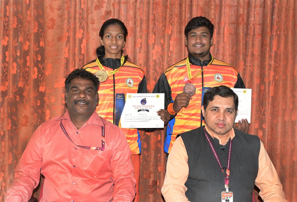 ಇದೇ ಕ್ರೀಡಾಕೂಟದ ಪುರುಷರ ಜಾವೆಲಿನ್ ಥ್ರೋ ಸ್ಪರ್ಧೆಯಲ್ಲಿ ಕಾಲೇಜಿನ ದ್ವಿತೀಯ ವರ್ಷದ ಸಿವಿಲ್ ಇಂಜಿನಿಯರಿAಗ್ ವಿಭಾಗದ ವಿದ್ಯಾರ್ಥಿ ಕೀರ್ತಿರಾಜ್.ಕೆ.ಎಸ್ ಕಂಚಿನ ಪದಕ ಗೆದ್ದುಕೊಂಡಿದ್ದಾರೆ.
