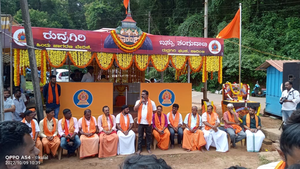 ಹಿಂದು ಜಾಗರಣ ವೇದಿಕೆ ರುದ್ರಗಿರಿ ಘಟಕ ಕಾರಿಂಜ ಬಂಟ್ವಾಳ ತಾಲೂಕು ಇದರ ವತಿಯಿಂದ ಕಾರಿಂಜ ಕ್ರಾಸ್ ವಗ್ಗ ಇಲ್ಲಿ ನೂತನ ಸಾರ್ವಜನಿಕ ಬಸ್ಸು ತಂಗುದಾಣ ಮತ್ತು ಭಗವಧ್ವಜ ಕಟ್ಟೆ ಉದ್ಘಾಟನೆಗೊಂಡಿತು.ಈ ಸಂದರ್ಭದಲ್ಲಿ ಹಿಂ.ಜಾ.ವೇ.ರಾಜ್ಯ ಪ್ರಮುಖರಾದ ರವಿರಾಜ್ ಬಿಸಿರೋಡ್ ,ವಿಭಾಗ ಪ್ರಮುಖರಾದ ರತ್ನಾಕರ್ ಶೆಟ್ಟಿ ಕಲ್ಲಡ್ಕ , ಅಜಿತ್ ಹೊಸಮನೆ, ಜಿಲ್ಲಾ ಸಹ ಸಂಯೋಜಕರಾದ ನರಸಿಂಹ ಮಾಣಿ, ಬಾಲಕೃಷ್ಣ ಕಲಾಯಿ ಹಾಗು ತಾಲೂಕು ಪ್ರಮುಖರು ಪರಿವಾರ ಸಂಘಟನೆಯ ಪ್ರಮುಖರು ಮತ್ತು ಸ್ಥಳೀಯ ಹಿರಿಯರು ಉಪಸ್ಥಿತರಿದ್ದರು. ಹಿಂ.ಜಾ.ವೇ.ರಾಜ್ಯ ಪ್ರಮುಖರಾದ ರವಿರಾಜ್ ಬಿಸಿರೋಡ್ ಮಾತನಾಡಿ ಹಿಂದೂ ಜಾಗರಣವೇದಿಕೆಯ ಸ್ಥಳೀಯ ಕಾರ್ಯಕರ್ತರನ್ನು ಮತ್ತು ಸಹಕರಿಸಿದ ಎಲ್ಲರನ್ನು ಅಭಿನಂದಿಸುತ್ತಾ ಸ್ವಚ್ಛ ಸದೃರುಡ ಸಮಾಜ ನಿರ್ಮಾಣದತ್ತ ಗಮನಹರಿಸುವಂತೆ ಕರೆನೀಡಿದರು ಹಾಗು ಜಿಲ್ಲಾ ಸಹ ಸಂಯೋಜಕರಾದ ನರಸಿಂಹ ಮಾಣಿ ಸಮಾರಂಭವನ್ನುದ್ದೇಶಿಸಿ ಮಾತನಾಡುತ್ತ ಶ್ರೀ ಕ್ಷೇತ್ರ ಕಾರಿಂಜದ ಸಂರಕ್ಷಣೆ ಮತ್ತು ಅದಕ್ಕೆ ಪೂರಕವಾಗಿ ಸಮಾಜ ಜಾಗೃತಗೊಂಡು ಕೆಲಸಮಾಡುವತ್ತ ಮುಂದಾಗಬೇಕು ಮತ್ತು ಯಾವುದೇ ಒಳ್ಳೆಯ ಕೆಲಸಮಾಡುವಾಗ ಕೊಂಕು ಮಾತುಗಳು ಅಪಹಾಸ್ಯಗಳು ಸರ್ವೇ ಸಾಮಾನ್ಯ ಅವುಗಳನ್ನೆಲ್ಲ ನಿರ್ಲಕ್ಷಿಸಿ ಸದೃರುಡ ಸಮಾಜ ನಿರ್ಮಾಣದತ್ತ ಮುಂದಾಗೋಣ ಎಂದು ನೂತನ ಸಾರ್ವಜನಿಕ ಬಸ್ಸು ತಂಗುದಾಣದ ನಿರ್ಮಾಣದಲ್ಲಿ ಕೈಜೋಡಿಸಿದ ಎಲ್ಲರಿಗು ಅಭಿನಂದಿಸಿದರು ಇದೆ ಸಂದರ್ಭ್ದಲ್ಲಿ ಬಸ್ಸು ತಂಗುದಾಣದ ನಿರ್ಮಾಣದ ಕಾರ್ಯದಲ್ಲಿ ಹಗಲು ರಾತ್ರಿ ಶ್ರಮಿಸಿದ ಶರತ್ ಕುಮಾರ್ ಮತ್ತು ನಮಿತ್ ಬೊಲ್ಲೊಟ್ಟು ಇವರನ್ನು ಸಾರ್ವಜನಿಕರ ಪರವಾಗಿ ಸನ್ಮಾನಿಸಲಾಯಿತು