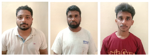 ಬೆಳಪು ಗ್ರಾಮದ ಹಾಜಿ ಗೇಟ್ ಬಳಿಯ ದಿ. ಸುಲ್ತಾನ್ ಅಹಮ್ಮದ್ ಅವರ ಮಗ ತಬ್ರೇಸ್ (30), ಮಲ್ಲಾರು ಗ್ರಾಮದ ಅಮಾನುಲ್ಲಾ ಅಸೈನ್ ಅವರ ಮಗ ಮೊಹಮ್ಮದ್ ಅಜೀಮ್ (39), ಬೆಳಪು ಗ್ರಾಮದ ಮಧುರಾ ಸ್ಟೋರ್ ಬಳಿಯ ನಿವಾಸಿ ಮಕ್ಬುಲ್ ಹುಸೇನ್ ಅವರ ಮಗ ಮೊಹಮ್ಮದ್ ವಲೀದ್ (20) ವಶಕ್ಕೆ ಪಡೆದ ಆರೋಪಿಗಳು