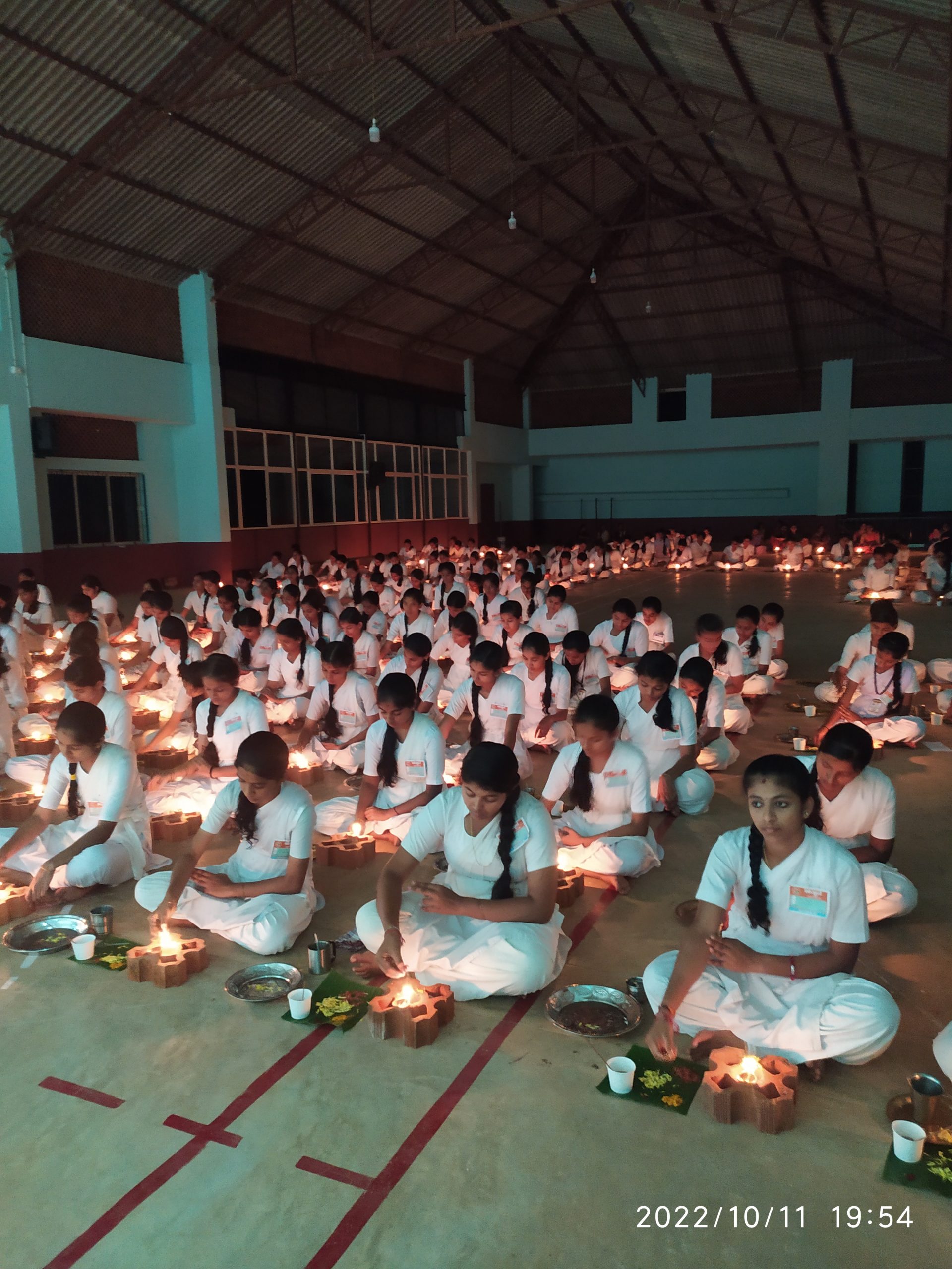 ‘ಉತ್ಥಾನ” ರಾಷ್ಟ್ರೀಯ ಸಂಸ್ಕಾರ ಬಾಲಿಕಾ ಶಿಬಿರದ ಅಂಗವಾಗಿ ಅ.11 ರಂದು ಶ್ರೀರಾಮ ಪದವಿ ವಿಭಾಗದ ಆಜಾದ್ ಸಭಾಭವನದಲ್ಲಿ ನಡೆದ ಸಾಮೂಹಿಕ ದೀಪ ಪೂಜನ ಕಾರ್ಯಕ್ರಮಕ್ಕೆ ಮಾರ್ಗದರ್ಶಕರಾದ ಶ್ರೀಮತಿ ಕಮಲಾ ಪ್ರಭಾಕರ್ ಭಟ್ ಹಾಗೂ ಶಿಬಿರಾಧಿಕಾರಿಯಾದ ಶ್ರೀಮತಿ ಪ್ರಮಿತಾ ಚಾಲನೆಯನ್ನು ನೀಡಿದರು.
