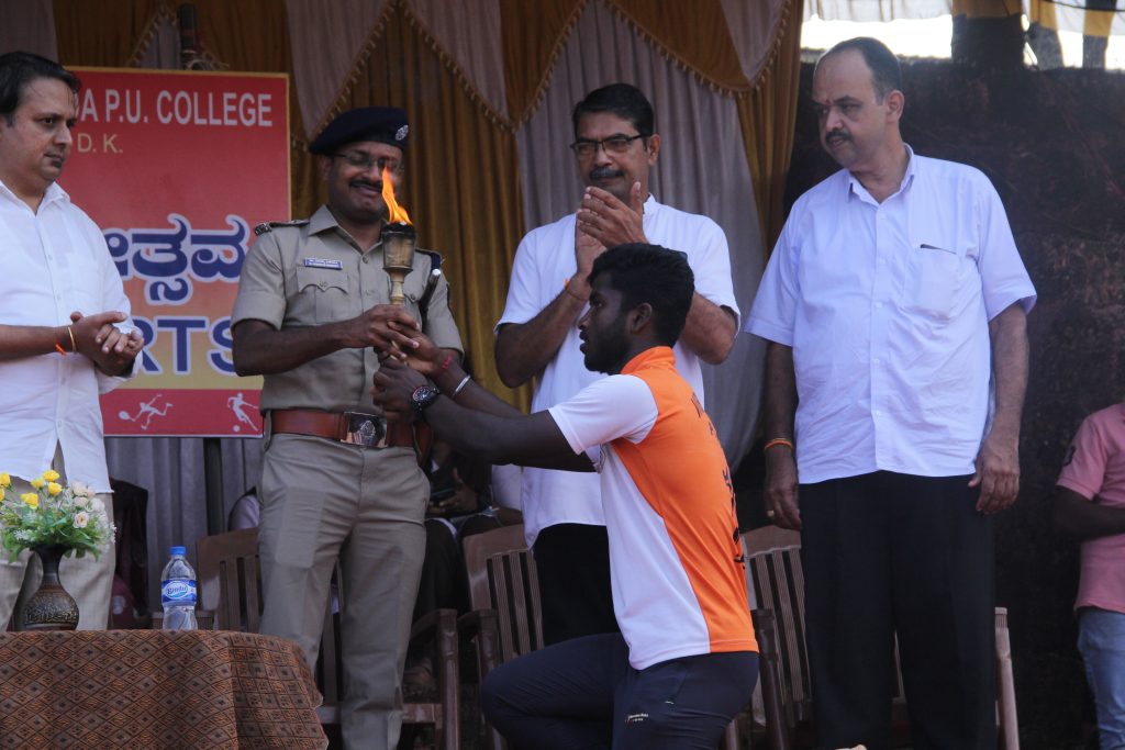 ಸ್ಪರ್ಧಾತ್ಮಕ ಯುಗದಲ್ಲಿ ಕ್ರೀಡೆಗಳು ವಿದ್ಯಾರ್ಥಿಗಳಲ್ಲಿ ಸ್ಪರ್ಧಾ ಮನೋಭಾವವನ್ನು ಮೂಡಿಸಲು ಸಹಾಯ ಮಾಡುತ್ತದೆ. ಶಾಲಾ ಕಾಲೇಜು ಮಟ್ಟದ ಕ್ರೀಡಾ ಕೂಟಗಳಿಂದ ಸ್ನೇಹ ಸೌಹಾರ್ದತೆಗಳು ಏರ್ಪಡುತ್ತವೆ. ಕ್ರೀಡಾಪಟುಗಳಿಗೆ ದೇಶ ವಿದೇಶ ಮಟ್ಟದಲ್ಲಿ ವಿಶೇಷ ಮನ್ನಣೆಯಿದೆ. ರಾಷ್ಟಿçÃಯ ಸಂಬAಧಗಳ ವೃದ್ಧಿಗೆ ಕ್ರೀಡೆಗಳ ಕೊಡುಗೆ ಅಪಾರವಾಗಿದೆ. ವೈಯಕ್ತಿಕ ಓರೆಕೋರೆಗಳನ್ನು ತಿದ್ದಿಕೊಂಡು ಹೊಂದಾಣಿಕೆಯ ಮನೋಭಾವವನ್ನು ಬೆಳೆಸಿಕೊಳ್ಳಲು ಕ್ರೀಡೆ ನೆರವಾಗುತ್ತದೆ ಎಂದರು. ಜಿಲ್ಲಾ, ರಾಜ್ಯ ಮತ್ತು ರಾಷ್ಟç ಮಟ್ಟದ ವಿವಿಧ ಕ್ರೀಡಾ ಸ್ಪರ್ಧೆಗಳಲ್ಲಿ ಭಾಗವಹಿಸಿ ಪ್ರಶಸ್ತಿ ಗಳಿಸಿದ ವಿದ್ಯಾರ್ಥಿಗಳಾದ ರಿತೇಶ್, ಅಖಿಲೇಶ್, ವಿಘ್ನೇಶ್, ರಜತ್, ನಿತೀನ್ ಖುಷಿ, ಪವಿತ್ರ, ಜೈಶೀಲ್ ರೈ, ಧನುಷ್, ಲೋಹಿತ್, ಗಗನ್, ಕೃಪೇಶ್, ಪವನ್ ಮತ್ತು ಪ್ರಣವ್ ಕ್ರೀಡಾಜ್ಯೋತಿಯನ್ನು ತರುವುದರ ಮೂಲಕ ಕಾರ್ಯಕ್ರಮಕ್ಕೆ ಚಾಲನೆ ನೀಡಿದರು.