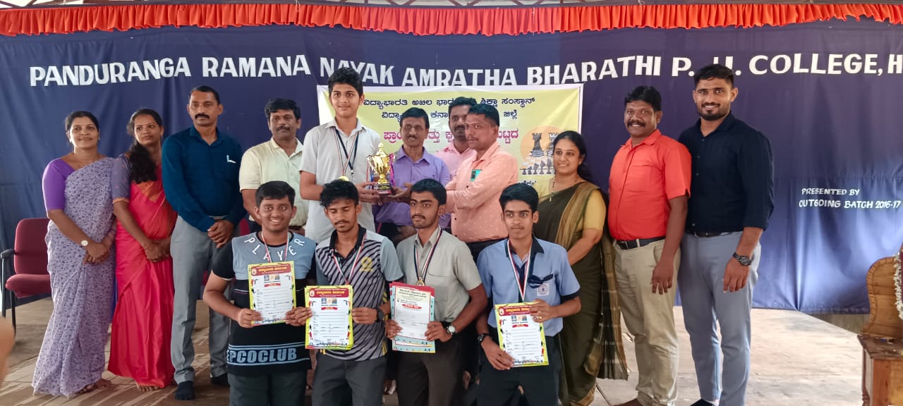 ಪುತ್ತೂರು : ಉಡುಪಿಯ ಹೆಬ್ರಿಯಲ್ಲಿ ನಡೆದ ವಿದ್ಯಾ ಭಾರತಿ ಪ್ರಾಂತ ಹಾಗು ಕ್ಷೇತ್ರ ಮಟ್ಟದ ಚೆಸ್ ಪಂದ್ಯಾಟದಲ್ಲಿ ರಾಜ್ಯ ತಂಡವನ್ನು ಪ್ರತಿನಿಧಿಸಿದ ವಿವೇಕಾನಂದ ಪದವಿಪೂರ್ವ ಕಾಲೇಜಿನ ಪ್ರಥಮ ಪಿಯುಸಿ ವಿಜ್ಞಾನ ವಿಭಾಗದ ಕೈಝೆನ್ ಎಸ್ (ಬಂಟ್ವಾಳದ ದೇವಸ್ಯ ಸೂರ್ಯನಾರಾಯಣ ಎನ್ ಕೆ ಮತ್ತು ಸುಮನ ಎಸ್ ಎನ್ ದಂಪತಿ ಪುತ್ರ) ಹಾಗೂ ದ್ವಿತೀಯ ಪಿಯುಸಿ ವಿಜ್ಞಾನ ವಿಭಾಗದ ಋತ್ವಿಕ್ ಸಾಯಿ ಗಣೇಶ್(ಕುಂದಾಪುರದ ತಾಲೂಕಿನ ಸಿದ್ದಾಪುರದ ಜನಾರ್ಧನ ಎಂ.ಆರ್ ಮತ್ತು ಜ್ಯೋತಿ ಕೆ.ಸಿ ದಂಪತಿ ಪುತ್ರ) ಪ್ರಥಮ ಸ್ಥಾನ ಪಡೆದು ರಾಷ್ಟ್ರ ಮಟ್ಟಕ್ಕೆ ಆಯ್ಕೆ ಆಗಿರುತ್ತಾರೆ.