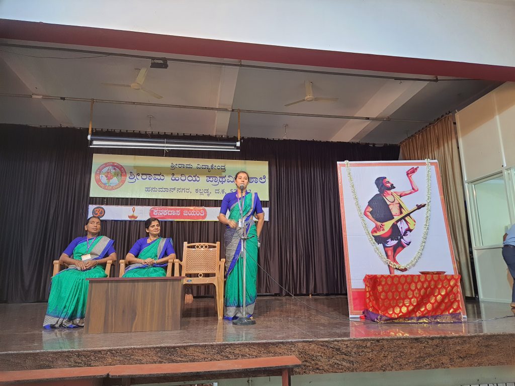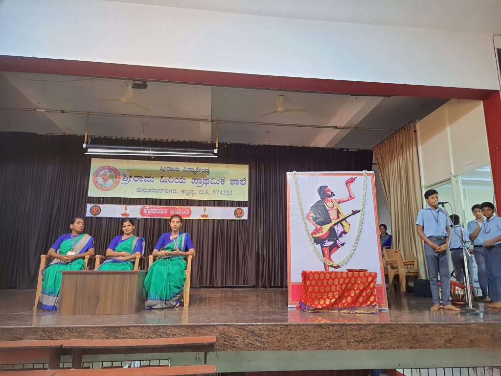 ಶ್ರೀರಾಮ ಹಿರಿಯ ಪ್ರಾಥಮಿಕ ಶಾಲೆಯ ಅಧ್ಯಾಪಕರಾದ ಪ್ರತೀಕ್ಷಾ ಶೆಟ್ಟಿ, ಮಾತನಾಡುತ್ತಾ “ಶ್ರೀನಿವಾಸ ದೇವರ ಹರಕೆಯಿಂದ ಹುಟ್ಟಿದ ಕಾರಣ ತಿಮ್ಮಪ್ಪ ನಾಯಕನೆಂಬ ಹೆಸರಿಟ್ಟರು. ದೇವಸ್ಥಾನದ ಜೀರ್ಣೋದ್ಧಾರ ಸಂದರ್ಭದಲಿ ಪತ್ತೆಯಾದ ಸಂಪತ್ತನ್ನು ಊರಿನವರಿಗೆ ಹಂಚಿರುವುದರಿAದ ಅವರಿಗೆ ಕನಕದಾಸ ಎಂಬ ಬಿರುದು ಬಂತು. ಯಾರು ಮೋಕ್ಷದ ದಾರಿಗೆ ಹೋಗುತ್ತಾರೆ? ಎಂಬ ಪ್ರಶ್ನೆಗೆ “ನಾ ಹೋದರೆ ಹೋದೆನು’ ಎಂಬ ಉತ್ತರವನ್ನು ನೀಡಿದರು. ಅಂದರೆ ನಾನು ಎಂಬ ಅಹಂವನ್ನು ಬಿಟ್ಟರೆ ಮೋಕ್ಷದ ದಾರಿಗೆ ಹೋಗಬಹುದು ಎಂದು