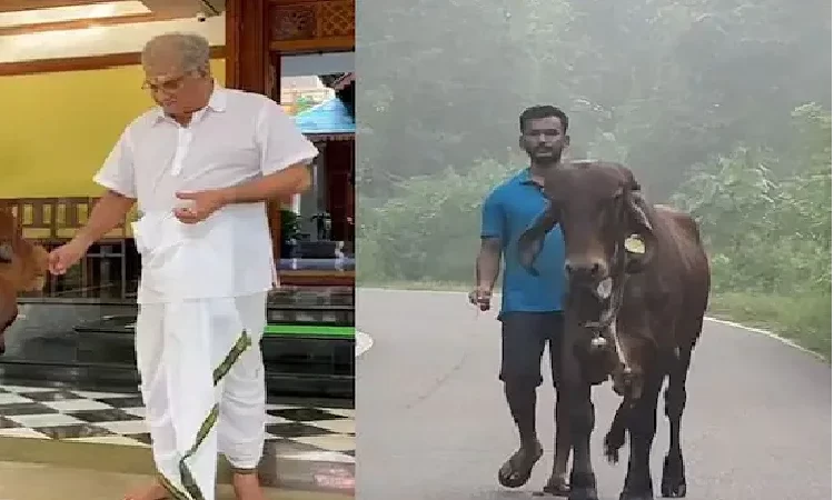 ಅಚ್ಚರಿ ಅಂದ್ರೆ ಬೆಂಗಳೂರಿನಿಂದ ಕರುವಿನ ಜೊತೆ ನಡೆದುಕೊಂಡೇ ಬಂದು ಕ್ಷೇತ್ರಕ್ಕೆ ಅರ್ಪಿಸಿದ್ದಾನೆ. ಕಳಸದ ಹಿರೇಬೈಲ್ನ ಶ್ರೇಯಾಂಸ್ ಜೈನ್ ತನ್ನ ಮನೆಯ ಮೊದಲ ಗಿರ್ ಕರುವನ್ನು ಧರ್ಮಸ್ಥಳಕ್ಕೆ ಅರ್ಪಿಸುತ್ತೇನೆಂದು ಹರಕೆ ಹೊತ್ತಿದ್ದರು. ಆ ಪ್ರಾರ್ಥನೆಯಂತೆ ಎರಡು ವರ್ಷಗಳ ನಂತರ ಬರೋಬ್ಬರಿ 360 ಕಿ.ಮೀಟರ್ ಗಿರ್ ಕರುವಿನ ಜೊತೆ ನಡೆದುಕೊಂಡು ಬಂದು ಧರ್ಮಸ್ಥಳಕ್ಕೆ ಅರ್ಪಿಸಿದ್ದಾರೆ. ಧರ್ಮಸ್ಥಳದ ಧರ್ಮಾಧಿಕಾರಿ ಡಾ.ಡಿ.ವೀರೇಂದ್ರ ಹೆಗ್ಗಡೆಯವರು ಗಿರ್ ಕರುವಿಗೆ ತಿನ್ನಲು ಫಲಹಾರ ನೀಡುವ ಮೂಲಕ ಬರಮಾಡಿಕೊಂಡರು.