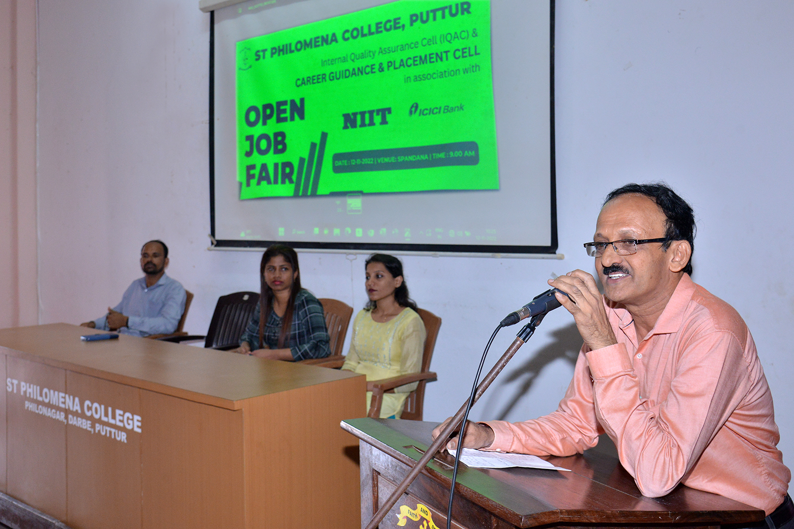 ರಚಿತಾ ಮತ್ತು ಬಳಗ ಪ್ರಾರ್ಥಿಸಿದರು. ವೃತ್ತಿ ಮಾರ್ಗದರ್ಶನ ಹಾಗೂ ಉದ್ಯೋಗ ನೇಮಕಾತಿ ಘಟಕದ ಸಂಚಾಲಕರಾದ ಡಾ. ರಾಧಾಕೃಷ್ಣ ಗೌಡ ಸ್ವಾಗತಿಸಿ ಪ್ರಾಸ್ತಾವಿಕವಾಗಿ ಮಾತನಾಡಿದರು. ಸಮಾಜಶಾಸ್ತ್ರ ವಿಭಾಗದ ಪ್ರಾಧ್ಯಾಪಕರಾದ ಲೆ. ಜೋನ್ಸನ್ ಡೇವಿಡ್ ಸಿಕ್ವೇರಾ ವಂದಿಸಿದರು, ಗಣಕ ವಿಜ್ಞಾನ ವಿಭಾಗದ ಪ್ರಾಧ್ಯಾಪಕಿ ಗೀತಾ ಪೂರ್ಣಿಮಾ ಕಾರ್ಯಕ್ರಮ ನಿರೂಪಿಸಿದರು.