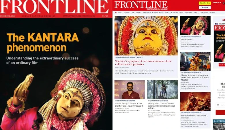 ಅಂತಾರಾಷ್ಟ್ರೀಯ ಪ್ರತಿಷ್ಠಿತ ಫ್ರಂಟ್ಲೈನ್ ಮ್ಯಾಗಜಿನ್ನಲ್ಲಿ ಕನ್ನಡದ ಸೂಪರ್ಹಿಟ್ ಚಲನಚಿತ್ರ ಕಾಂತಾರಾದ ಸ್ಟಿಲ್ ಅನ್ನು ಕವರ್ ಪೇಜ್ನಲ್ಲಿ ಬಳಸಲಾಗಿದೆ. ಕವರ್ ಪೇಜ್ ಗೆ ಫೋಟೋ ಬಳಸುವುದರ ಜೊತೆಗೆ ‘ಅದ್ಭುತ ಕಾಂತಾರ’ ಎಂಬ ಶೀರ್ಷಿಕೆಯಡಿ ಮುಖಪುಟದಲ್ಲಿ ಕಾಂತಾರ ಚಿತ್ರವನ್ನು ಬಳಸಿಕೊಳ್ಳಲಾಗಿದೆ. 1984ರಿಂದ ಈವರೆಗೆ ಯಾವುದೇ ಕನ್ನಡ ಚಿತ್ರದ ಫೋಟೋಗಳು ಫ್ರಂಟ್ಲೈನ್ ಮ್ಯಾಗಜಿನ್ನ ಮುಖಪುಟದಲ್ಲಿ ಬಂದಿರಲಿಲ್ಲ ಎನ್ನುವುದು ವಿಶೇಷ.