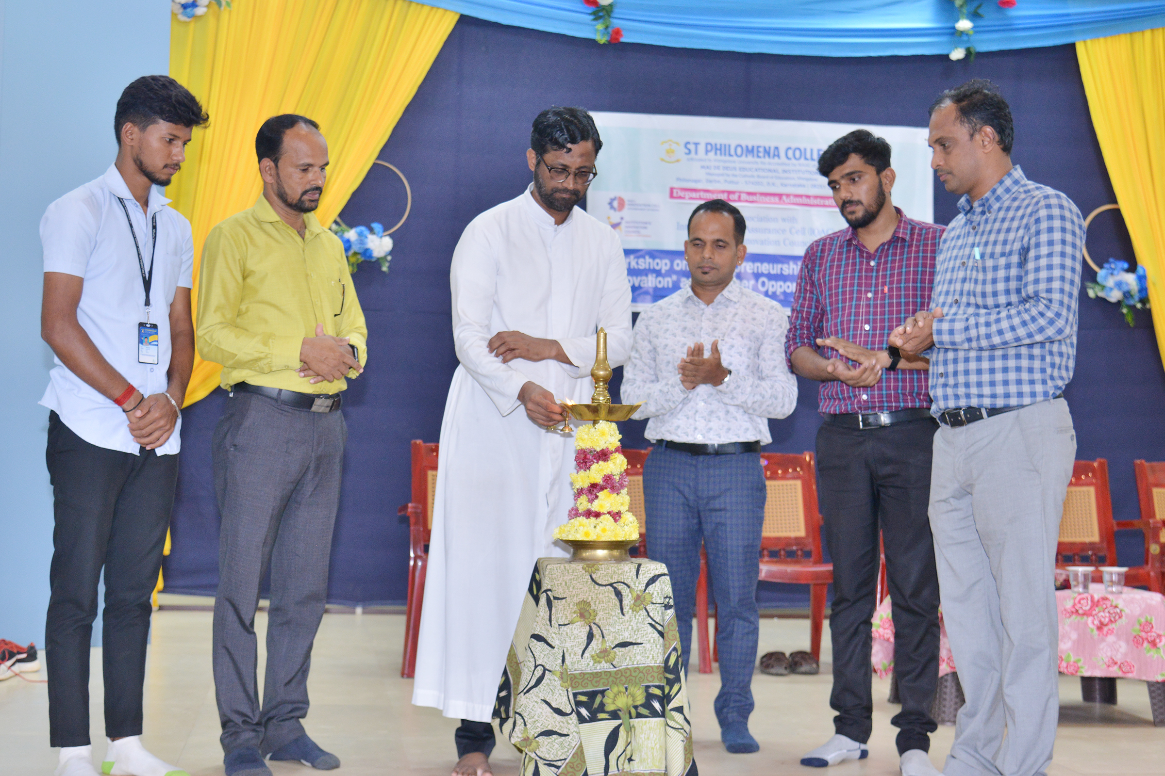 ಪುತ್ತೂರು : ಸಂತ ಫಿಲೋಮಿನಾ ಕಾಲೇಜು, ವ್ಯವಹಾರ ಆಡಳಿತ ವಿಭಾಗ, ನಿರ್ವಹಣಾ ಸಂಘ ಹಾಗೂ ಇನ್ಸ್ಟಿಟ್ಯೂಶನ್ ಇನೊವೇಶನ್ ಕೌನ್ಸಿಲ್ ಇವುಗಳ ಸಂಯುಕ್ತ ಆಶ್ರಯದಲ್ಲಿ ನಿರ್ವಹಣಾ ಸಂಘದ ಪ್ರಸಕ್ತ ಶೈಕ್ಷಣಿಕ ವರ್ಷದ ಕಾರ್ಯಕ್ರಮಗಳ ಉದ್ಘಾಟನೆ ಮತ್ತು ಉದ್ಯಮಶೀಲತೆ ಹಾಗೂ ಆವಿಷ್ಕಾರ ಎಂಬ ವಿಷಯದ ಕುರಿತು ಕಾರ್ಯಗಾರವು ಕಾಲೇಜಿನ ಬೆಳ್ಳಿ ಹಬ್ಬ ಸಭಾಭವನದಲ್ಲಿ ನಡೆಯಿತು.