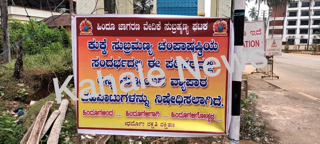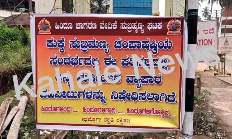 ” ಕುಕ್ಕೇ ಸುಬ್ರಹ್ಮಣ್ಯ ಚಂಪಾಷಷ್ಠಿಯ ಸಂದರ್ಭದಲ್ಲಿ ಅನ್ಯಮತೀಯರ ವ್ಯಾಪಾರ ವಹಿವಾಟುಗಳನ್ನು ನಿಷೇಧಿಸಲಾಗಿದೆ. ” ಬ್ಯಾನರ್ ಅಳವಡಿಸಿದ ಹಿಂದೂ ಜಾಗರಣಾ ವೇದಿಕೆ – ಕಹಳೆ ನ್ಯೂಸ್
