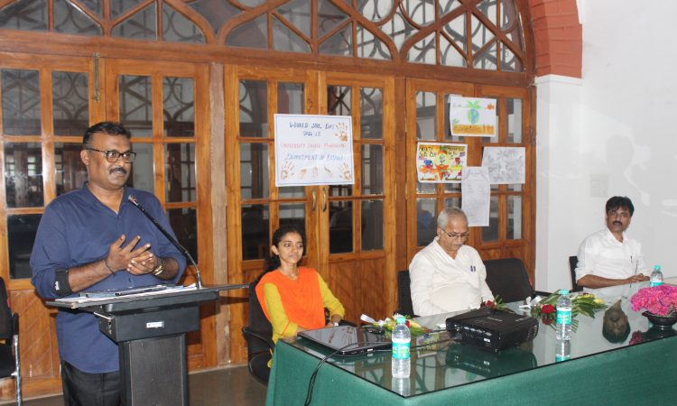 ಮಂಗಳೂರು : ನಗರದ ವಿಶ್ವವಿದ್ಯಾಲಯ ಕಾಲೇಜಿನ ಸಸ್ಯಶಾಸ್ತ್ರ ವಿಭಾಗ ಹಾಗೂ ಐಕ್ಯೂಎಸಿ ಗಳ ಸಹಯೋಗದೊಂದಿಗೆ ಕಾಲೇಜಿನ ರವೀಂದ್ರ ಕಲಾಭವನದಲ್ಲಿ ವಿಶ್ವ ಮಣ್ಣು ದಿನಾಚರಣೆ ಆಯೋಜಿಸಲಾಗಿತ್ತು.