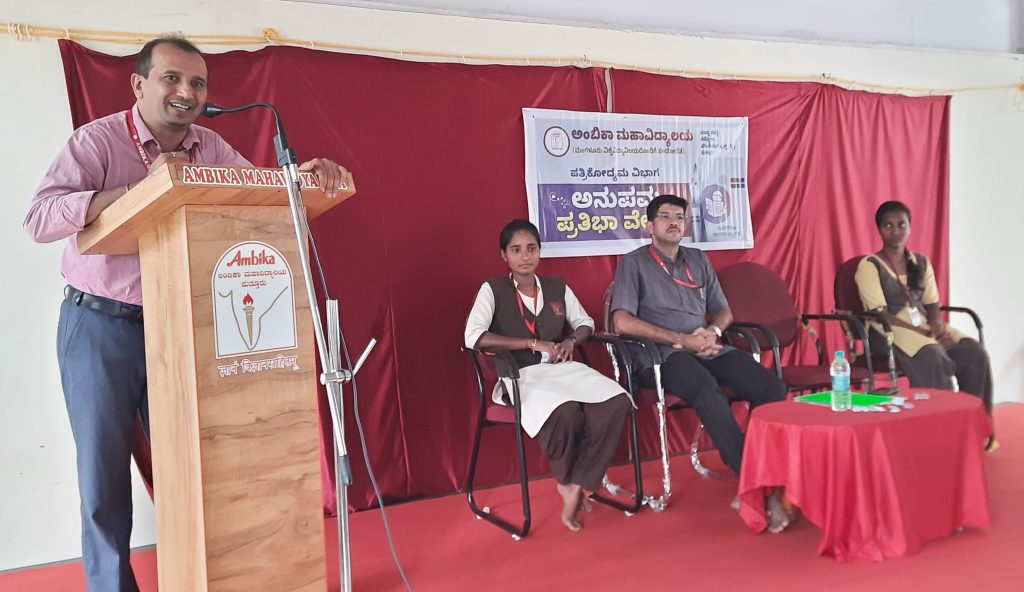 ಅವರು ಅಂಬಿಕಾ ಮಹಾವಿದ್ಯಾಲಯದ ಪತ್ರಿಕೋದ್ಯಮ ವಿಭಾಗದ ಆಶ್ರಯದಲ್ಲಿ ಅನುಪಮ ಪ್ರತಿಭಾ ವೇದಿಕೆ ಮೂಲಕ ಹಮ್ಮಿಕೊಂಡಿದ್ದ ವಿಷಯಾಧಾರಿತ ಅಭಿನಯ ಹಾಗೂ ಚರ್ಚಾ ಗೋಷ್ಠಿಯಲ್ಲಿ ಮುಖ್ಯ ಅತಿಥಿಯಾಗಿ ಭಾಗವಹಿಸಿ ಮಾತನಾಡಿದರು.