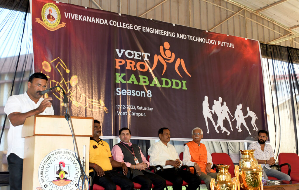 ಅವರು ಪುತ್ತೂರಿನ ವಿವೇಕಾನಂದ ಕಾಲೇಜ್ ಆಫ್ ಎಂಜಿನಿಯರಿAಗ್ ಎಂಡ್ ಟೆಕ್ನಾಲಜಿಯ ಆಯ್ದ ವಿದ್ಯಾರ್ಥಿ ತಂಡಗಳ ನಡುವೆ ಕಾಲೇಜಿನ ಆವರಣದಲ್ಲಿ ನಡೆಯುತ್ತಿರುವ ಪ್ರೋ-ಕಬಡ್ಡಿ ಪಂದ್ಯಾಟಕ್ಕೆ ಚಾಲನೆ ನೀಡಿ ಮಾತಾಡಿದರು. ಕ್ರೀಡೆಗೆ ಸಾಕಷ್ಟು ಪ್ರೋತ್ಸಾಹ ದೊರಕುತ್ತಿದ್ದು, ಇದರಿಂದ ಹಳ್ಳಿಗಳಲ್ಲಿಯೂ ದೊಡ್ಡ ದೊಡ್ಡ ಕ್ರೀಡಾಕೂಟಗಳನ್ನು ಹಮ್ಮಿಕೊಳ್ಳುವುದಕ್ಕೆ ಸಾಧ್ಯವಾಗಿದೆ ಎಂದರು. ದೇಶೀಯ ಕ್ರೀಡೆಗೆ ಸೂಕ್ತ ತರಬೇತಿ ಮತ್ತು ಪ್ರೋತ್ಸಾಹವನ್ನು ನೀಡುವುದರಿಂದ ಅದು ಜಗದಗಲದಲ್ಲಿ ವ್ಯಾಪಿಸುತ್ತದೆ ಈ ಕೆಲಸವು ಎಲ್ಲಾ ಕಡೆಯಲ್ಲಿ ನಡೆಯಲಿ ಎಂದರು.