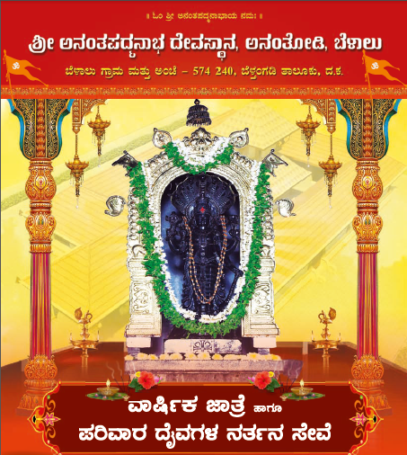 ಶ್ರೀ ಅನಂತಪದ್ಮನಾಭ ದೇವಸ್ಥಾನ, ಅನಂತೋಡಿ ಬೆಳ್ತಂಗಡಿಯಲ್ಲಿ ಡಿಸೆಂಬರ್ 25 ರಿಂದ 26 ರವರೆಗೆ ನಡೆಯಲಿರುವ ವಾರ್ಷಿಕ ಜಾತ್ರಾಮಹೋತ್ಸವದ ಪ್ರಯುಕ್ತ ವಿವಿಧ ವೈದಿಕ ಧಾರ್ಮಿಕ ಹಾಗೂ ಸಾಂಸ್ಕøತಿಕ ಕಾರ್ಯಕ್ರಮವು ನಡೆಯಲಿದೆ.