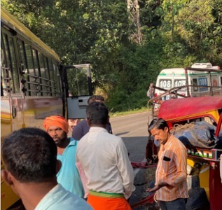 ಗೂಡ್ಸ್ ರಿಕ್ಷಾಕ್ಕೆ ಶಾಲಾ ಮಕ್ಕಳ ಬಸ್ ಮುಖಾಮುಖಿಯಾಗಿ ಢಿಕ್ಕಿಯಾಗಿ ಈ ಅಪಘಾತ ಸಂಭವಿಸಿದೆ. ಗೂಡ್ಸ್ ರಿಕ್ಷಾ ಸಂಪೂರ್ಣ ನುಜ್ಜು ಗುಜ್ಜಾಗಿದೆ.