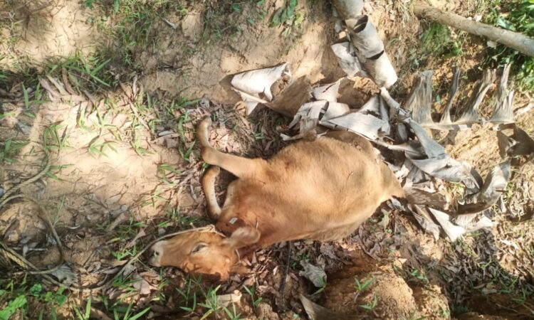 ಬೆಳ್ತಂಗಡಿ ಕುದ್ಯಾಡಿ ಗ್ರಾಮದಲ್ಲಿ ಚಿರತೆ ದಾಳಿಗೆ ಗೋವು ಬಲಿಯಾಗಿದೆ. ಇಲ್ಲಿನ ಕುದ್ಯಾಡಿ ಗ್ರಾಮದ ಕೆಳಗಿನಬೆಟ್ಟು ಮನೆಯ ಶೀನ ಪೂಜಾರಿ ಅವರು ದನವನ್ನು ಇಂದು ಬೆಳಿಗ್ಗೆ ತೋಟದಲ್ಲಿ ಮೇಯಲು ಬಿಟ್ಟಿದ್ದರು.