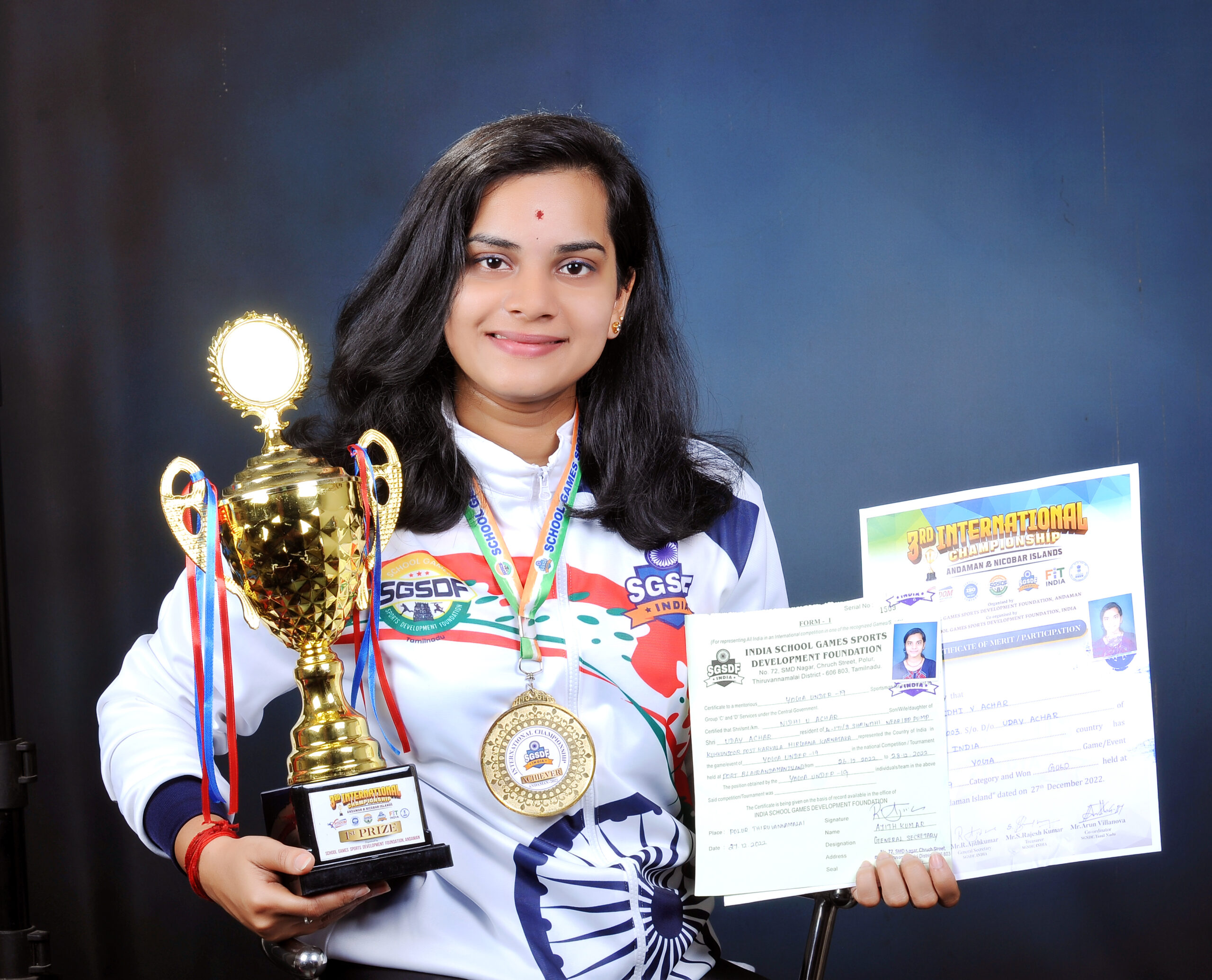 ದಿನಾಂಕ : 26-12-2022 ರಿಂದ 28-12-2022 ರ ವರೆಗೆ ಅಂಡಮಾನ್ ಮತ್ತು ನಿಕೋಬಾರ್ ದ್ವೀಪದಲ್ಲಿ ಇಂಡಿಯಾ ಸ್ಕೂಲ್ ಗೇಮ್ಸ್ ಸ್ಪೋರ್ಟ್ಸ್ ಫೌಂಡೇಶನ್ ನ (S. G. S. D. F India) ವತಿಯಿಂದ ನಡೆಸಲಾದ ಮೂರನೇ ಅಂತರಾಷ್ಟ್ರೀಯ 19 ವರ್ಷದೊಳಗಿನ ಯೋಗ ಚಾಂಪಿಯನ್ ಶಿಪ್ ನಲ್ಲಿ ಕಾರ್ಕಳ ಕ್ರಿಯೇಟಿವ್ ಕಾಲೇಜಿನ ಪೂರ್ವ ವಿದ್ಯಾರ್ಥಿನಿ ನಿಧಿ ಯು ಆಚಾರ್ ಭಾರತವನ್ನು ಪ್ರತಿನಿಧಿಸಿ ಬಂಗಾರದ ಪದಕವನ್ನು ಗಳಿಸಿರುತ್ತಾರೆ. ನಿಧಿ ಯು ಆಚಾರ್ ಬಾಲ್ಯದಿಂದಲೂ ಅನೇಕ ಯೋಗ ಸ್ಪರ್ಧೆಗಳಲ್ಲಿ ಭಾಗವಹಿಸಿ ಬಹುಮಾನ ಪಡೆದ ಪ್ರತಿಭೆಯಾಗಿದ್ದಾರೆ. ಕುಮಾರಿ ನಿಧಿ ಕಾರ್ಕಳದಉದಯ ಆಚಾರ್ ಮತ್ತು ಲತಾ ರವರ ಪುತ್ರಿ. ವಿದ್ಯಾರ್ಥಿನಿಯ ಈ ಸಾಧನೆಯನ್ನು ಕ್ರಿಯೇಟಿವ್ ಪದವಿ ಪೂರ್ವ ಕಾಲೇಜಿನ ಪ್ರಾಂಶುಪಾಲರಾದ ವಿದ್ವಾನ್ ಗಣಪತಿ ಭಟ್, ಕಾಲೇಜಿನ ಆಡಳಿತ ಮಂಡಳಿ ಹಾಗೂ ಉಪನ್ಯಾಸಕ, ಉಪನ್ಯಾಸಕೇತರ ವೃಂದದವರು ಅಭಿನಂದಿಸಿದ್ದಾರೆ. ಈಕೆ ಅಂತರಾಷ್ಟ್ರೀಯ ಯೋಗಗುರು ಶ್ರೀ ನರೇಂದ್ರ ಕಾಮತ್ ರವರಲ್ಲಿ ಯೋಗಭ್ಯಾಸ ತರಬೇತಿಯನ್ನು ಪಡೆಯುತ್ತಿದ್ದಾರೆ.