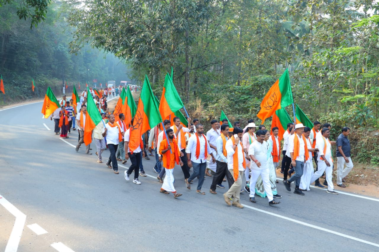 ಜ.16. ರಂದು ರಾತ್ರಿ ಬಿಜೆಪಿ ಕಾರ್ಯಕರ್ತ ಕೆಲಿಂಜ ಕೃಷ್ಣಪ್ಪ ಗೌಡ ಪಾಲ್ತಿಮಾರ್ ರ ಮನೆಯಲ್ಲಿ ವಾಸ್ತವ್ಯ ಮಾಡಿದ್ದ, ಶಾಸಕ ರಾಜೇಶ್ ನಾಯ್ಕ್ ಉಳಿಪ್ಪಾಡಿಗುತ್ತು ಹಾಗೂ ಕಾರ್ಯಕರ್ತರು ಶ್ರೀ ಉಳ್ಳಾಲ್ತಿ ದೇವಸ್ಥಾನದಲ್ಲಿ ಪೂಜೆ ಸಲ್ಲಿಸಿ ಬಳಿಕ ” ವಂದೆ ಮಾತರಂ ” ಗೀತೆ ಹಾಡಿದ ಬಳಿಕ ಪಾದಯಾತ್ರೆ ಹೊರಡಿತು. ಪಾದಯಾತ್ರೆ ಹೊರಡುವ ಮುನ್ನ ಶಾಸಕ ರಾಜೇಶ್ ನಾಯ್ಕ್ ಅವರು ಭೂಮಿ ತಾಯಿಗೆ ನಮಸ್ಕರಿಸಿ ಬಳಿಕ ಹೆಜ್ಜೆ ಹಾಕಿದರು.