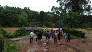 ಉಕ್ಕಿ ಹರಿಯುವ ಪಯಸ್ವಿನಿಯ ಸೊಬಗನ್ನು ನೋಡಲು ಜನ ತಂಡೊಪತಂಡ ಅಗಿ ಅರಂಬೂರು ತೂಗು ಸೆತುವೆ ಬಳಿ ಬರುತ್ತಿರುವ ದ್ರುಶ್ಯ.