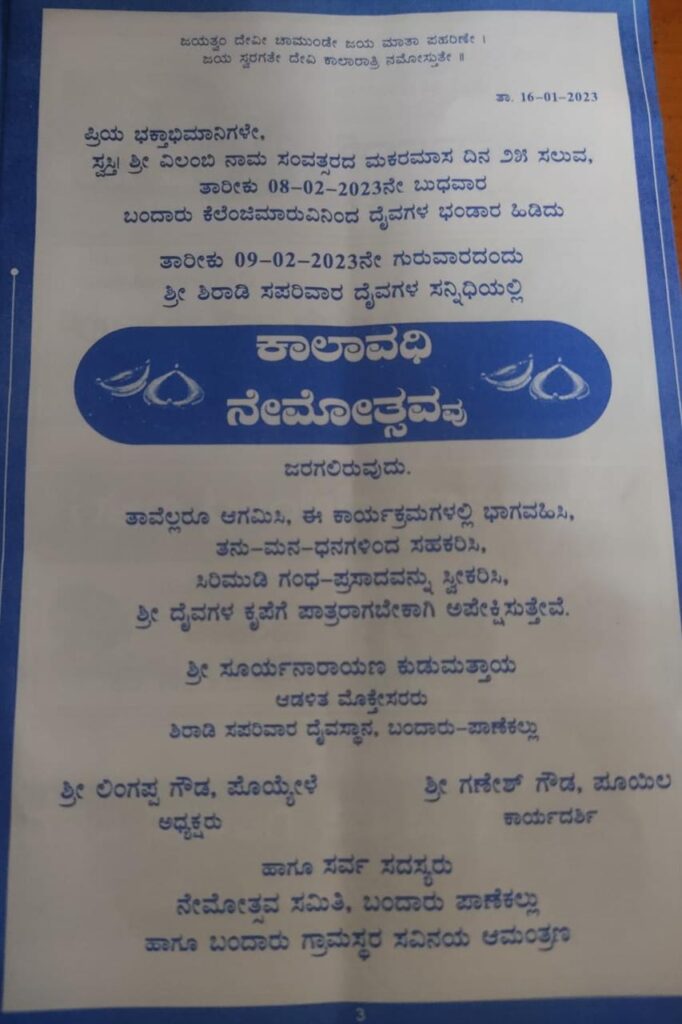 ಬಂದಾರಿನಲ್ಲಿ ಫೆ. 08 ಹಾಗೂ 09 ರಂದು ನಡೆಯಲಿದೆ ಶ್ರೀ ಶಿರಾಡಿ ಸಪರಿವಾರ ದೈವಗಳ ವರ್ಷದ ಕಾಲಾವಧಿ ನೇಮೋತ್ಸವ –ಕಹಳೆ ನ್ಯೂಸ್
