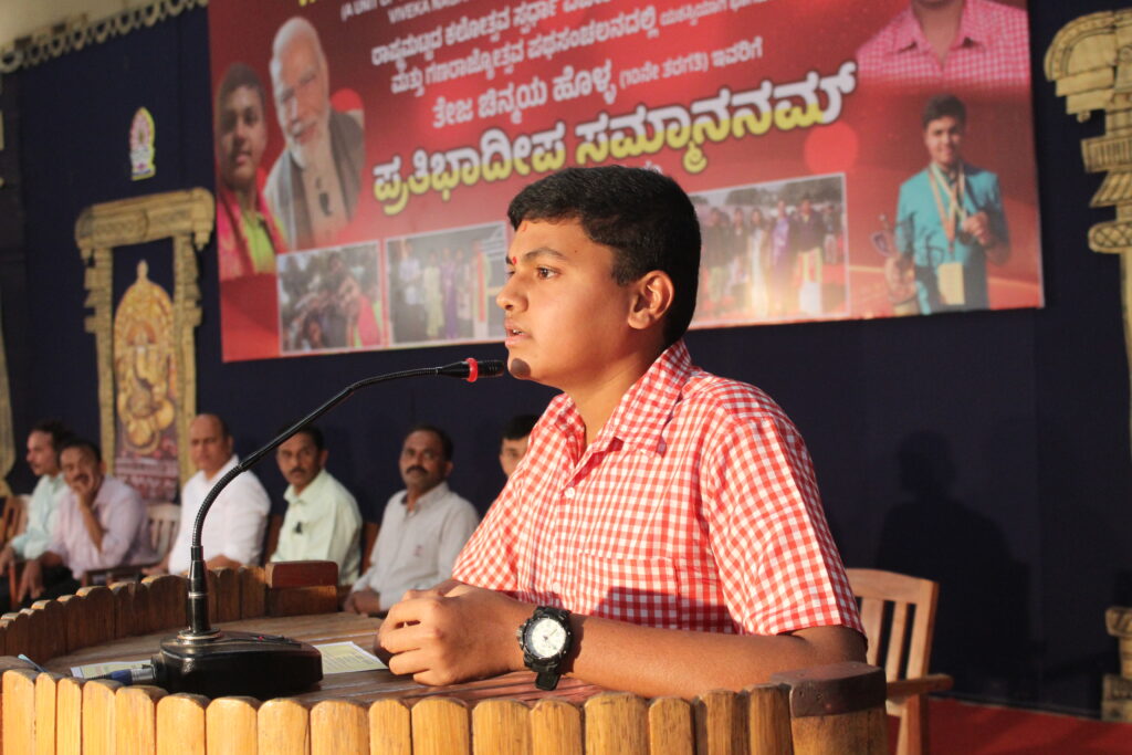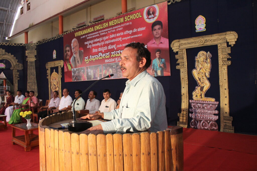 ವಿವೇಕಾನಂದ ಆಂಗ್ಲ ಮಾಧ್ಯಮ ಶಾಲೆಯ ಯಾದವಶ್ರೀ ಸಭಾಂಗಣದಲ್ಲಿ ರಾಷ್ಟ್ರಮಟ್ಟದ ಕಲೋತ್ಸವ ವಿಜೇತ ಹಾಗೂ ಮಾನನೀಯ ಪ್ರಧಾನ ಮಂತ್ರಿಗಳ ಪರೀಕ್ಷಾ ಪೇ ಚರ್ಚಾ ಕಾರ್ಯಕ್ರಮದಲ್ಲಿ ಭಾಗವಹಿಸಿದ ವಿವೇಕಾನಂದ ಆಂಗ್ಲ ಮಾಧ್ಯಮ ಶಾಲೆಯ 10ನೇ ತರಗತಿ ವಿದ್ಯಾರ್ಥಿ ಕುಮಾರ ತೇಜ ಚಿನ್ಮಯ ಹೊಳ್ಳ (ಶ್ರೀ ಹರೀಶ್ ಹೊಳ್ಳ ಹಾಗೂ ವಿದುಷಿ ಡಾ. ಸುಚಿತ್ರಾ ಹೊಳ್ಳ ದಂಪತಿ ಪುತ್ರ) ಇವರ ಸನ್ಮಾನ ಸಮಾರಂಭ “ಪ್ರತಿಭಾ ದೀಪ ಸಮ್ಮಾನನಮ್” ಮುಖ್ಯ ಅತಿಥಿಗಳಾಗಿ ಮಾತನಾಡುತ್ತಿದ್ದರು.