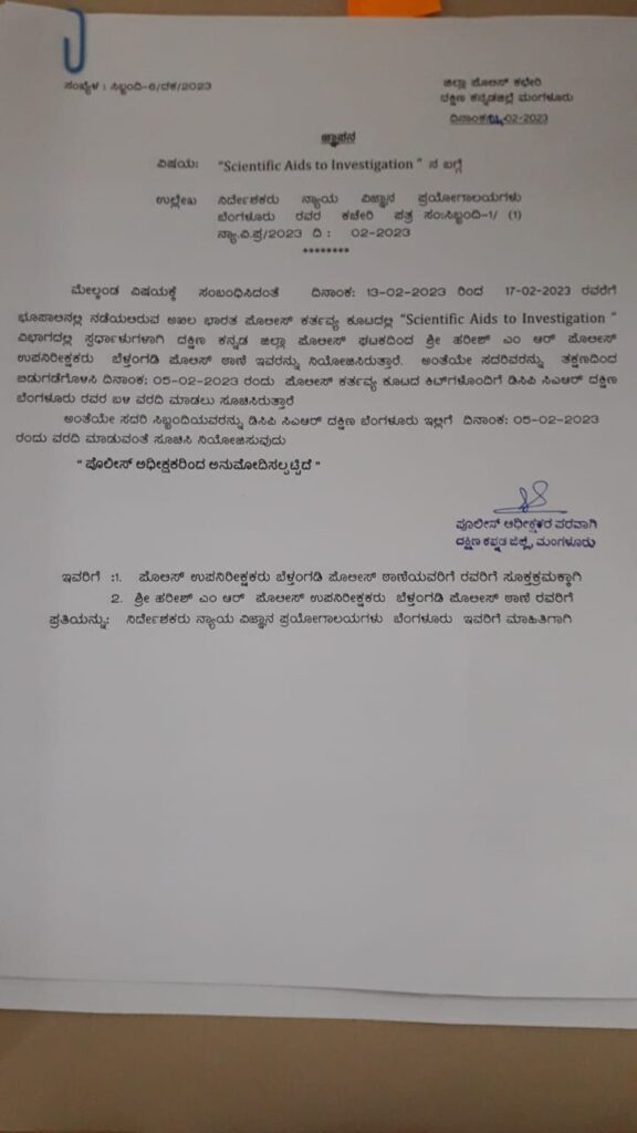 ಫೆ. 13. ರಿಂದ 17 ರ ವರೆಗೆ ಭೂಪಾಲ್ನಲ್ಲಿ ನಡೆಯಲಿರುವ ಅಖಿಲ ಭಾರತ ಪೊಲೀಸ್ ಕರ್ತವ್ಯ ಕೂಟದಲ್ಲಿ “Scientific Aids to Investigation ವಿಭಾಗದ ಸ್ಪರ್ಧೆಯಲ್ಲಿ ದಕ್ಷಿಣ ಕನ್ನಡ ಜಿಲ್ಲಾ ಪೊಲೀಸ್ ಘಟಕದಿಂದ ಬೆಳ್ತಂಗಡಿ ಪೊಲೀಸ್ ಠಾಣೆ ಉಪನಿರೀಕ್ಷಕ ಹರೀಶ್, ಎಂ. ಆರ್. ಇವರನ್ನು ಆಯ್ಕೆ ಮಾಡಿದ್ದಾರೆ.