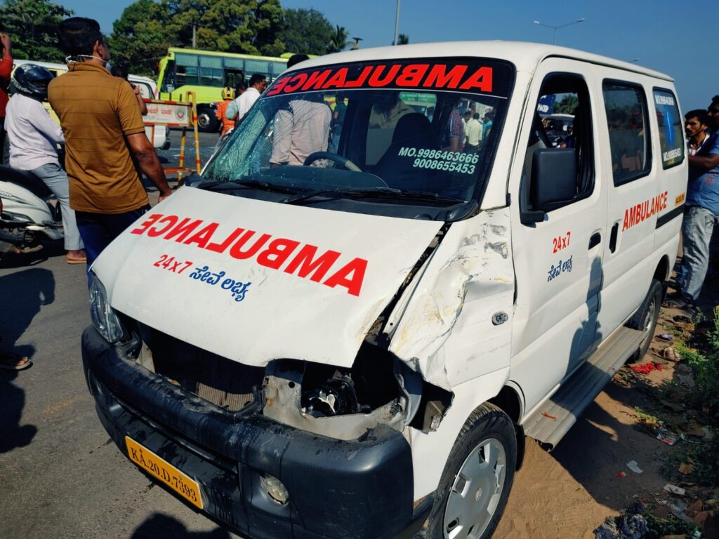 ಕೋಟೇಶ್ವರ ಸಮೀಪದ ವಕ್ವಾಡಿಯಿಂದ ವಯೋವೃದ್ಧ ರೋಗಿಯನ್ನು ಕೋಟೇಶ್ವರದ ಖಾಸಗಿ ಆಸ್ಪತ್ರೆಗೆ ಚಿಕಿತ್ಸೆಗೆಂದು ಕರೆದುಕೊಂಡು ಹೋಗುತ್ತಿದ್ದ ಆಂಬುಲೆನ್ಸ್ ಚಾಲಕ ಸರ್ವೀಸ್ ರಸ್ತೆಯಿಂದ ಹೆದ್ದಾರಿಯನ್ನು ಕ್ರಾಸ್ ಮಾಡುವ ವೇಳೆ, ಕುಂದಾಪುರದಿಂದ ಉಡುಪಿ ಕಡೆಗೆ ಬರುತ್ತಿದ್ದ ಲಾರಿಯು ಆಂಬುಲೆನ್ಸ್ ಹಿಂಭಾಗಕ್ಕೆ ಡಿಕ್ಕಿ ಹೊಡೆದ ಪರಿಣಾಮ ಅಪಘಾತದ ರಭಸಕ್ಕೆ ಆಂಬುಲೆನ್ಸ್ ತಿರುಗಿ ಸರ್ವೀಸ್ ರಸ್ತೆಯಲ್ಲಿ ಬರುತ್ತಿದ್ದ ಟಿಪ್ಪರಿಗೆ ಡಿಕ್ಕಿ ಹೊಡೆದಿದೆ.