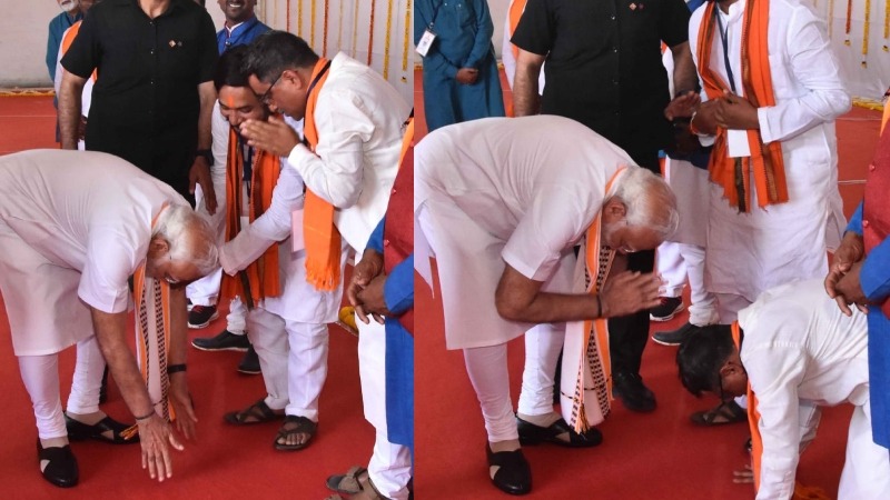 ದಶಪಥ ಹೆದ್ದಾರಿ ಲೋಕಾರ್ಪಣೆಗಾಗಿ ಮಂಡ್ಯಕ್ಕೆ ಆಗಮಿಸಿದ್ದ ಪ್ರಧಾನಿ ನರೇಂದ್ರ ಮೋದಿ ಅವರು, ಧಾರವಾಡ ಐಐಟಿ ಉದ್ಘಾಟನಾ ವೇದಿಕೆಗೆ ತೆರಳುತ್ತಿದ್ದಾಗ ಹುಬ್ಬಳ್ಳಿ ಮೂಲದ ವಿಶ್ವ ಹಿಂದೂ ಪರಿಷತ್ನ ಸಹ ಕಾರ್ಯದರ್ಶಿ ಚೇತನ್ ರಾವ್ ಅವರು ಮೋದಿ ಕಾಲಿಗೆ ನಮಸ್ಕರಿಸಲು ಮುಂದೆ ಬಂದಿದ್ದಾರೆ. ಚೇತನ್ ರಾವ್ ನಮಸ್ಕರಿಸಿದ ಬಳಿಕ ನರೇಂದ್ರ ಮೋದ ಅವರು ತಲೆ ಬಾಗಿ ಪ್ರತಿ ನಮಸ್ಕಾರ ಮಾಡಿದ್ದಾರೆ. ಸದ್ಯ ಈ ಫೋಟೋ ಸಾಮಾಜಿಕ ಜಾಲತಾಣದಲ್ಲಿ ವೈರಲ್ ಆಗಿದೆ.
