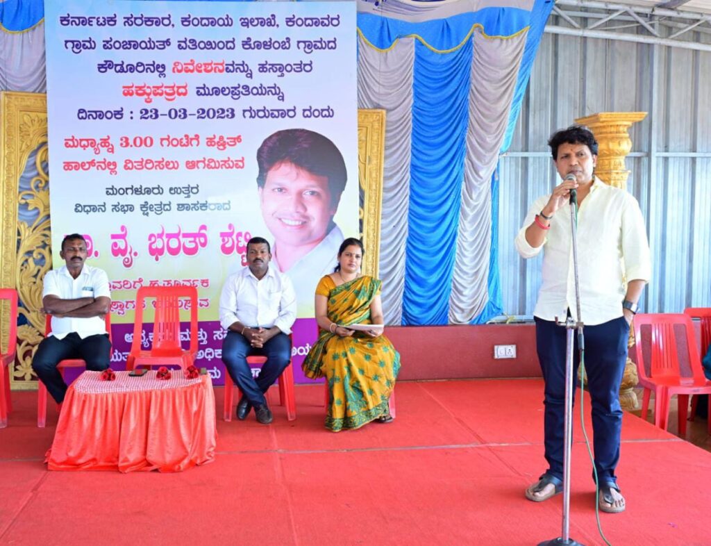 ಕಂದಾವರ ಪಂಚಾಯತ್ ವ್ಯಾಪ್ತಿಯ ಕೌಡೂರಿನಲ್ಲಿ ಆಯೋಜಿಸಲಾದ ಹಕ್ಕುಪತ್ರ ವಿತರಣೆ ಕಾರ್ಯಕ್ರಮದಲ್ಲಿ ಕಂದಾವರ ಪಂಚಾಯತ್ ವ್ಯಾಪ್ತಿಯ ಕೊಳಂಬೆ ಗ್ರಾಮದ ಕೌಡೂರಿನಲ್ಲಿ ನಿವೇಶನ ಹಸ್ತಾಂತರದ ಜೊತೆಗೆ 170 ಕುಟುಂಬಗಳಿಗೆ ಹಕ್ಕುಪತ್ರ ನೀಡಿ ಮಾತನಾಡಿ, ಈಗ ಗುರುತಿಸಲಾದ ನಿವೇಶನದಲ್ಲಿ ಕಚ್ಚಾ ರಸ್ತೆ ನಿರ್ಮಿಸಲಾಗಿದೆ. ನಿಮ್ಮ ಆಶೀರ್ವಾದವಿದ್ದಲ್ಲಿ ಖಂಡಿತವಾಗಿಯೂ ಮುಂದಿನ ಅವಧಿಗೆ ಇಲ್ಲಿ ಕಾಂಕ್ರೀಟ್ ರಸ್ತೆ ನಿರ್ಮಾಣಗೊಳ್ಳಲಿದೆ ಎಂದರು.