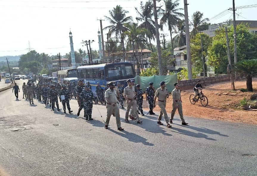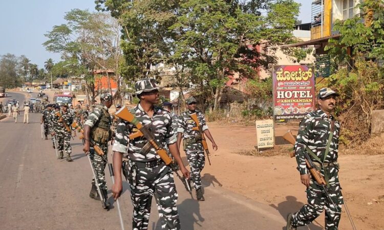ಮಂಗಳೂರು : ರಾಜ್ಯ ವಿಧಾನಸಭಾ ಚುನಾವಣೆಗೆ ಸಂಬಂಧಿಸಿದಂತೆ ದಕ್ಷಿಣ ಕನ್ನಡ ಜಿಲ್ಲಾ ಪೊಲೀಸ್ ಘಟಕದ ವ್ಯಾಪ್ತಿಯಲ್ಲಿ ಚುನಾವಣಾ ಕರ್ತವ್ಯ ನಿರ್ವಹಿಸಲು ಮೊದಲ ಹಂತದಲ್ಲಿ 4 ಸಿ ಆರ್ ಪಿ ಎಫ್ ತಂಡಗಳು ದಕ್ಷಿಣ ಕನ್ನಡ ಜಿಲ್ಲೆಗೆ ಆಗಮಿಸಿದ್ದು, ಬಂಟ್ವಾಳ ಹಾಗೂ ಪುತ್ತೂರು ವಿಧಾನಸಭಾ ಕ್ಷೇತ್ರ ವ್ಯಾಪ್ತಿಯ ಪ್ರಮುಖ ಹಾಗೂ ಸೂಕ್ಷ್ಮ ಸ್ಥಳಗಳಲ್ಲಿ ಜಿಲ್ಲಾ ಎಸ್ಪಿ ಅವರ ನೇತೃತ್ವದಲ್ಲಿ 2 ಸಿ ಆರ್ ಪಿ ಎಫ್ ತಂಡಗಳು ಹಾಗೂ ಒಂದು ಕೆ ಎಸ್ ಆರ್ ಪಿ ತುಕಡಿ ಮತ್ತು ಸ್ಥಳೀಯ ಪೊಲೀಸ್ ಅಧಿಕಾರಿಗಳಿಂದ ಪಥ ಸಂಚಲನ ನಡೆಸಿ ಸಾರ್ವಜನಿಕರಲ್ಲಿ ಧೈರ್ಯ ಹಾಗೂ ಆತ್ಮ ವಿಶ್ವಾಸ ತುಂಬಲಾಯಿತು.