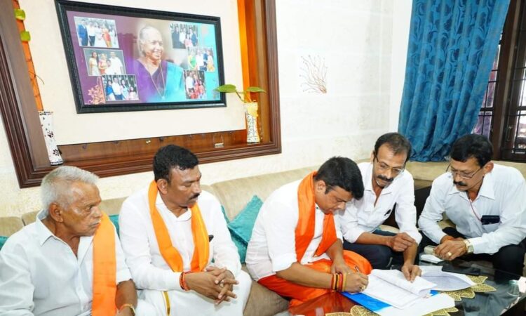 ಬೆಳ್ತಂಗಡಿ : ವಿಧಾನ ಸಭಾ ಕ್ಷೇತ್ರದ ಬಿಜೆಪಿ ಅಭ್ಯರ್ಥಿಯಾಗಿ ಶಾಸಕ ಹರೇಶ್ಪೂಂಜ ಅವರು ಎರಡನೇ ಬಾರಿಗೆ ಇಂದು ನಾಮಪತ್ರ ಸಲ್ಲಿಸಿದರು. ನಾಮಪತ್ರ ಸಲ್ಲಿಕೆಗೂ ಮುನ್ನ ಕುತ್ಯಾರು ಸೋಮನಾಥ ದೇವರ ಸನ್ನಿದಿಗೆ ತೆರಳಿ ಎರಡನೇ ಬಾರಿಗೆ ಕ್ಷೇತ್ರದ ಜನರ ಸೇವೆ ಮಾಡಲು ಅವಕಾಶ ಕಲ್ಲಿಸಲು ದೇವರಲ್ಲಿ ಪಾರ್ಥಿಸಿದರು. ನಂತರ ಸೋಮನಾಥ ದೇವರ ಸನ್ನಿದಿಯ ವಠಾರದಲ್ಲಿ ಸೇರಿದ ಅಪಾರ ಸಂಖ್ಯೆಯ ಕಾರ್ಯಕರ್ತರೊಂದಿಗೆ ಬೆಳ್ತಂಗಡಿ ಆಡಳಿತ ಸೌಧಕ್ಕೆ ಮೆರವಣಿಗೆಯಮೂಲಕ ತೆರಳಿದರು.