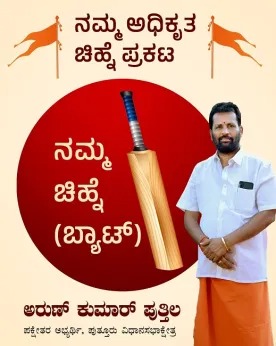 ಅರುಣ್ ಕುಮಾರ್ ಪುತ್ತಿಲ ಅವರು ಪಕ್ಷೇತರವಾಗಿ ಕಣಕ್ಕೆ ಇಳಿದ ಬಳಿಕ ಅನೇಕರು ಇವರ ಮನವೊಲಿಸುವ ಪ್ರಯತ್ನವನ್ನ ಮಾಡಿದ್ರು. ನಾಮಪತ್ರ ಹಿಂದಕ್ಕೆ ಪಡೆಯುವಂತೆ ಓಲೈಕೆ ಮಾಡಿದ್ದರು, ಆದರೆ ಇದಾವುದಕ್ಕೂ ಮಣಿಯದ ಅರುಣ್ ಕುಮಾರ್ ಪುತ್ತಿಲ ಅವರು ದಿಟ್ಟ ಹೆಜ್ಜೆಯನ್ನ ಇಟ್ಟು ಸ್ಪರ್ಧೆಗೆ ಇಳಿದಿದ್ದಾರೆ. ಏ 24ನಾಮಪತ್ರ ಹಿಂತೆಗೆಯಲು ಕೊನೆಯ ದಿನವಾಗಿದ್ದು, ಅರುಣ್ ಪುತ್ತಿಲರವರು ನಾಮಪತ್ರ ಹಿಂಪಡೆಯದ ಹಿನ್ನಲೆಯಲ್ಲಿ ಅವರ ಸ್ಪರ್ಧೆ ಖಚಿತಗೊಂಡಿದೆ. ಇದೀಗ ಚುನಾವಣಾ ಆಯೋಗ ಅವರಿಗೆ ಕ್ರಿಕೆಟ್ ಬ್ಯಾಟ್ ಚಿಹ್ನೆ ನೀಡಿದೆ.