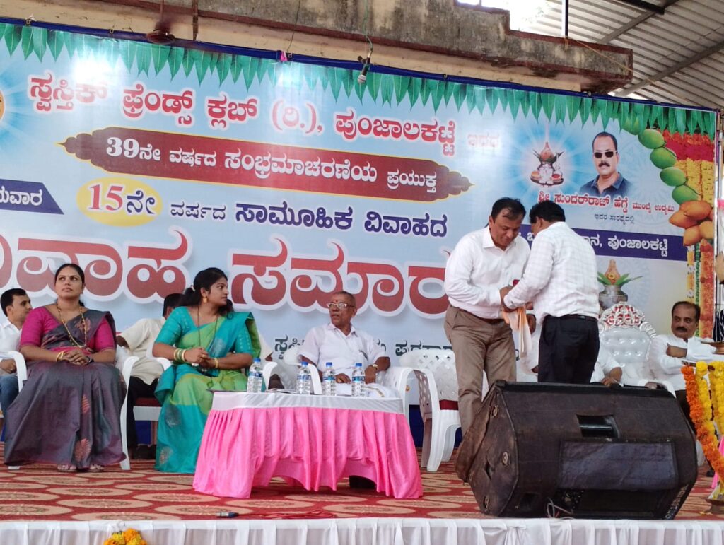 ಪುಂಜಾಲಕಟ್ಟೆ ಸ್ವಸ್ತಿಕ್ ಫ್ರೆಂಡ್ಸ್ ಕ್ಲಬ್ ವತಿಯಿಂದ ಉಚಿತ ಸಾಮೂಹಿಕ ವಿವಾಹ ಹಾಗೂ ಸ್ವಸ್ತಿ ಸಿರಿ ಪ್ರಶಸ್ತಿ ಪ್ರದಾನ ಕಾರ್ಯಕ್ರಮ – ಕಹಳೆ ನ್ಯೂಸ್