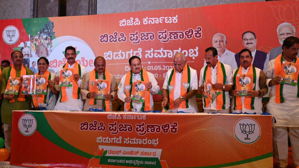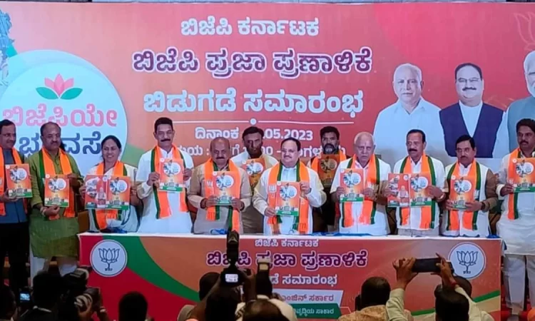ರಾಜ್ಯ ವಿಧಾನಸಭಾ ಚುನಾವಣೆಗೆ ಪಕ್ಷದ ಪ್ರಣಾಳಿಕೆಯನ್ನು ಬಿಡುಗಡೆ ಮಾಡಿರುವ ಬಿಜೆಪಿಯು, ಅಧಿಕಾರಕ್ಕೆ ಬಂದರೆ ಪಡಿತರದಲ್ಲಿ 5 ಕೆಜಿ ಅಕ್ಕಿ ಜೊತೆ ಇನ್ನೂ 5 ಕೆಜಿ ಸಿರಿಧಾನ್ಯ ವಿತರಣೆ ವಿತರಣೆ ಮಾಡುವುದಾಗಿ ಹಾಗೂ ಬಿಪಿಎಲ್ ಕುಟುಂಬಕ್ಕೆ ಪ್ರತಿ ದಿನ ಅರ್ಧ ಲೀಟರ್ ನಂದಿನಿ ಹಾಲು ನೀಡುವ ಭರವಸೆಯನ್ನು ನೀಡಿದೆ. ಬೆಂಗಳೂರು: ರಾಜ್ಯ ವಿಧಾನಸಭಾ ಚುನಾವಣೆಗೆ ಪಕ್ಷದ ಪ್ರಣಾಳಿಕೆಯನ್ನು ಬಿಡುಗಡೆ ಮಾಡಿರುವ ಬಿಜೆಪಿಯು, ಅಧಿಕಾರಕ್ಕೆ ಬಂದರೆ ಪಡಿತರದಲ್ಲಿ 5 ಕೆಜಿ ಅಕ್ಕಿ ಜೊತೆ ಇನ್ನೂ 5 ಕೆಜಿ ಸಿರಿಧಾನ್ಯ ವಿತರಣೆ ವಿತರಣೆ ಮಾಡುವುದಾಗಿ ಹಾಗೂ ಬಿಪಿಎಲ್ ಕುಟುಂಬಕ್ಕೆ ಪ್ರತಿ ದಿನ ಅರ್ಧ ಲೀಟರ್ ನಂದಿನಿ ಹಾಲು ನೀಡುವ ಭರವಸೆಯನ್ನು ನೀಡಿದೆ.