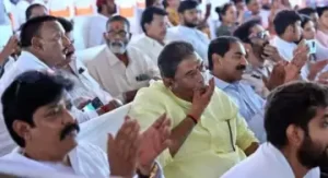 ಹೊಸಪೇಟೆಯ ಪುನೀತ್ ರಾಜ್ ಕುಮಾರ್ ಮೈದಾನದಲ್ಲಿ ನಿನ್ನೆ ಬಿಜೆಪಿ ಸಮಾವೇಶ ನಡೆಯಿತು. ಪ್ರಧಾನಿ ನರೇಂದ್ರ ಮೋದಿ ಅವರೊಂದಿಗೆ ಆನಂದ್ ಸಿಂಗ್ ಪುತ್ರ ಸಿದ್ದಾರ್ಥ್ ಸಿಂಗ್ ವೇದಿಕೆ ಹಂಚಿಕೊಂಡಿದ್ದರು. ಈ ವೇಳೆ ಸಾಮಾನ್ಯ ಕಾರ್ಯಕರ್ತನಂತೆ ವೇದಿಕೆ ಮುಂಭಾಗದ ಕುರ್ಚಿಯಲ್ಲಿ ಕುಳಿತಿದ್ದ ಆನಂದ್ ಸಿಂಗ್ ಮಗನ ಮಾತುಗಳನ್ನು ಸಿಳ್ಳೆ ಹಾಕಿ ಸಂಭ್ರಮಿಸಿದೆ.