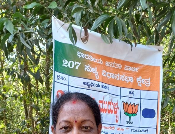 ಬಿಜೆಪಿ ಅಭ್ಯರ್ಥಿ ಕು. ಭಾಗೀರಥಿ ಮುರುಳ್ಯ, ಮತ ಚಲಾವಣೆ ಮಾಡಿದ್ದಾರೆ. ಸುಳ್ಯ ವಿಧಾನಸಭಾ ಕ್ಷೇತ್ರದ ಬಿಜೆಪಿ ಅಭ್ಯರ್ಥಿ ಕು. ಭಾಗೀರಥಿ ಮುರುಳ್ಯ ಅವರು ಮುರುಳ್ಯ ಶಾಂತಿನಗರ ಶಾಲಾ ಮತಗಟ್ಟೆಯಲ್ಲಿ ಸರತಿ ಸಾಲಿನಲ್ಲಿ ನಿಂತು ಮತದಾನ ಮಾಡಿದರು.