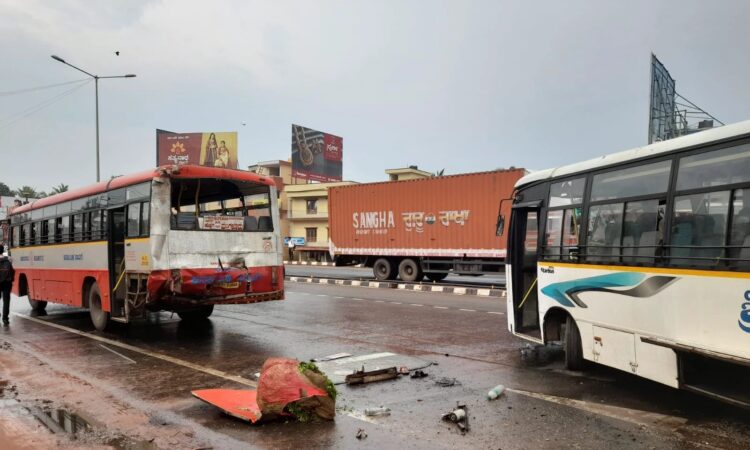 ಎರಡು ಬಸ್ ಗಳು ಮಂಗಳೂರು ಕಡೆಗೆ ಸಂಚರಿಸುತ್ತಿದ್ದು, ಮಳೆಯಾಗುತ್ತಿದ್ದ ಪರಿಣಾಮ ನಿಯಂತ್ರಣ ಕಳೆದುಕೊಂಡ ಖಾಸಗಿ ಬಸ್ ಎದುರಿನಿಂದ ಹೋಗುತ್ತಿದ್ದ ಸರ್ಕಾರಿ ಬಸ್ ಗೆ ಡಿಕ್ಕಿ ಹೊಡೆದಿದೆ ಎನ್ನಲಾಗಿದೆ